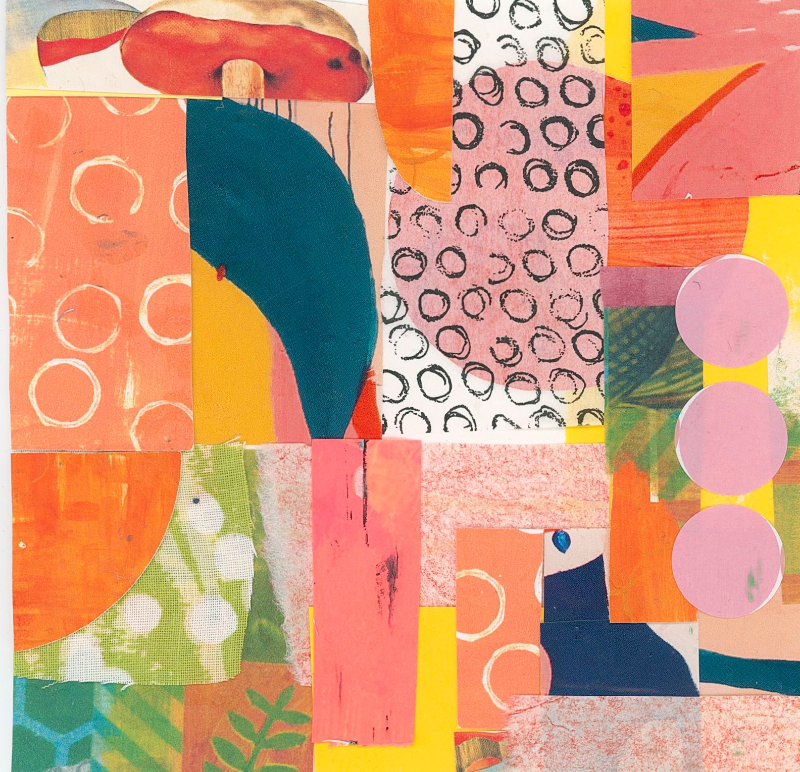 Mixed media collage made with recycled and handmade paper, fabric, and pen.
