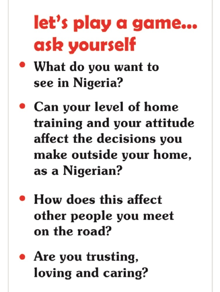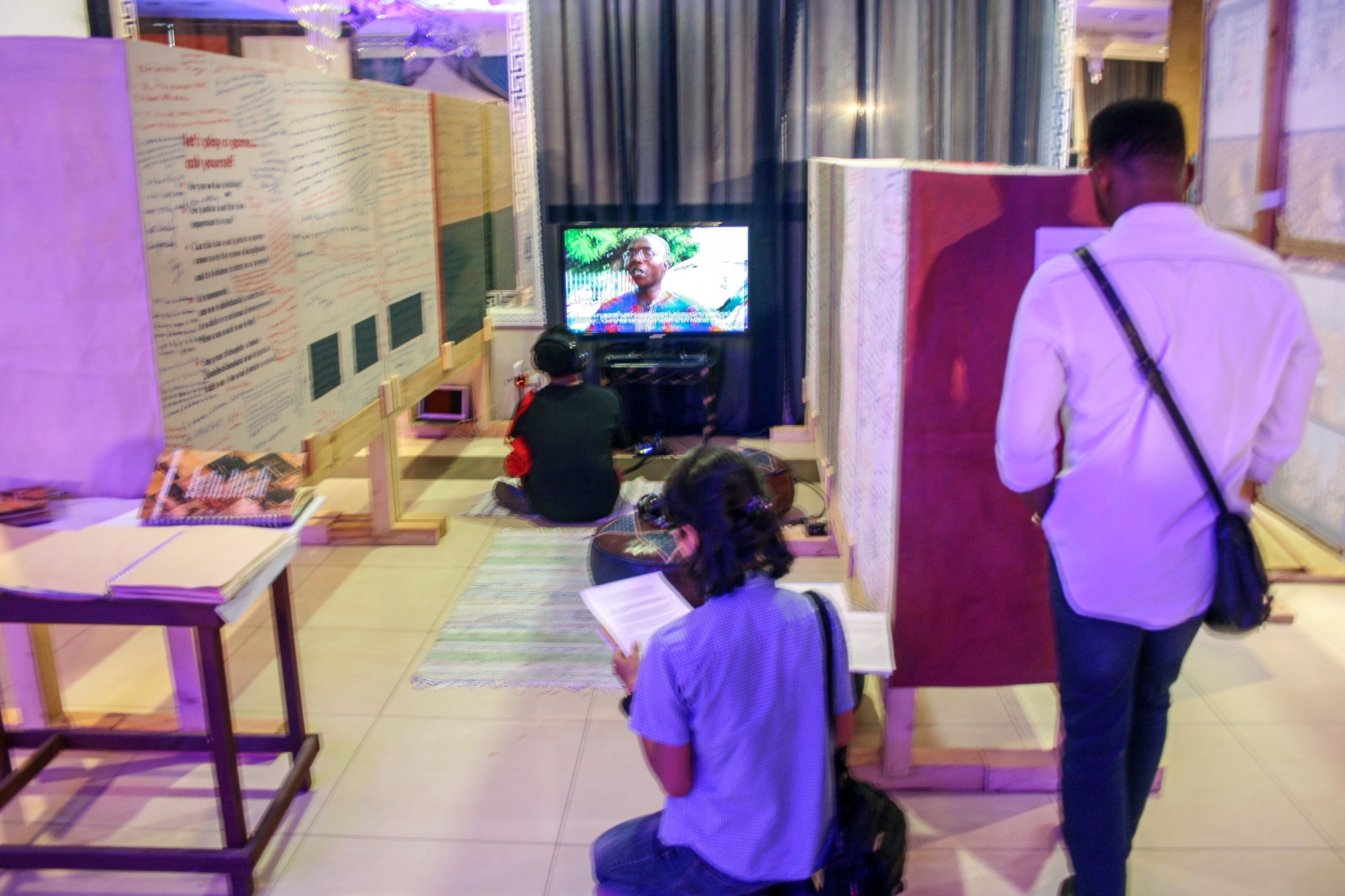 Ask Yourself is an art of sensitisation. Intended as a catalyst for positive change, it posed as a game providing audiences the opportunity on many levels, to have a think/a rethink on our individual contribution to this society where we belong. The single artwork comprised: Painting, Artist-books, Installation, Film, and a book.