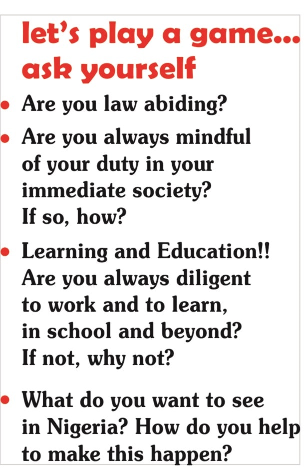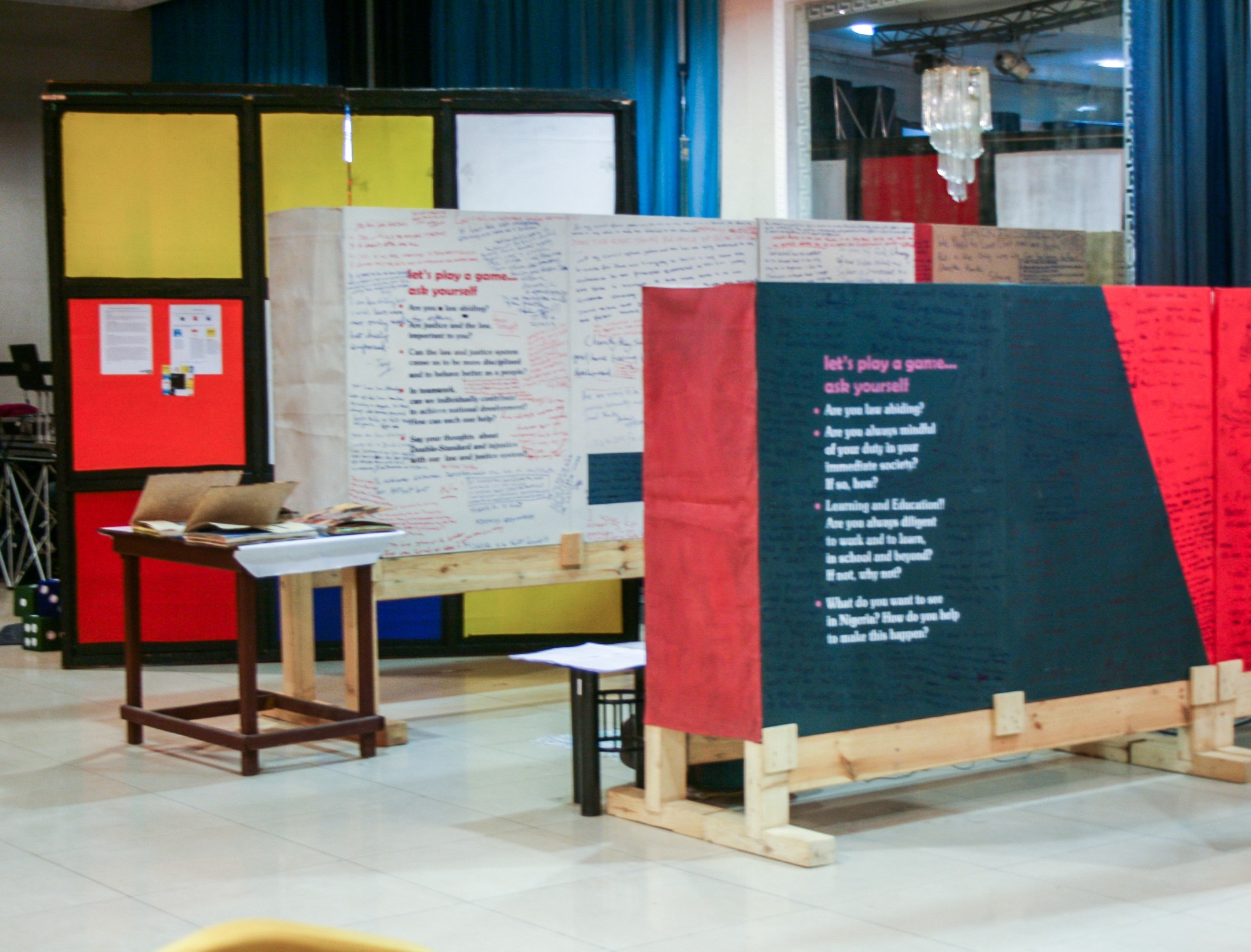 Ask Yourself is an art of sensitisation. Intended as a catalyst for positive change, it posed as a game providing audiences the opportunity on many levels, to have a think/a rethink on our individual contribution to this society where we belong. The single artwork comprised: Painting, Artist-books, Installation, Film, and a book.