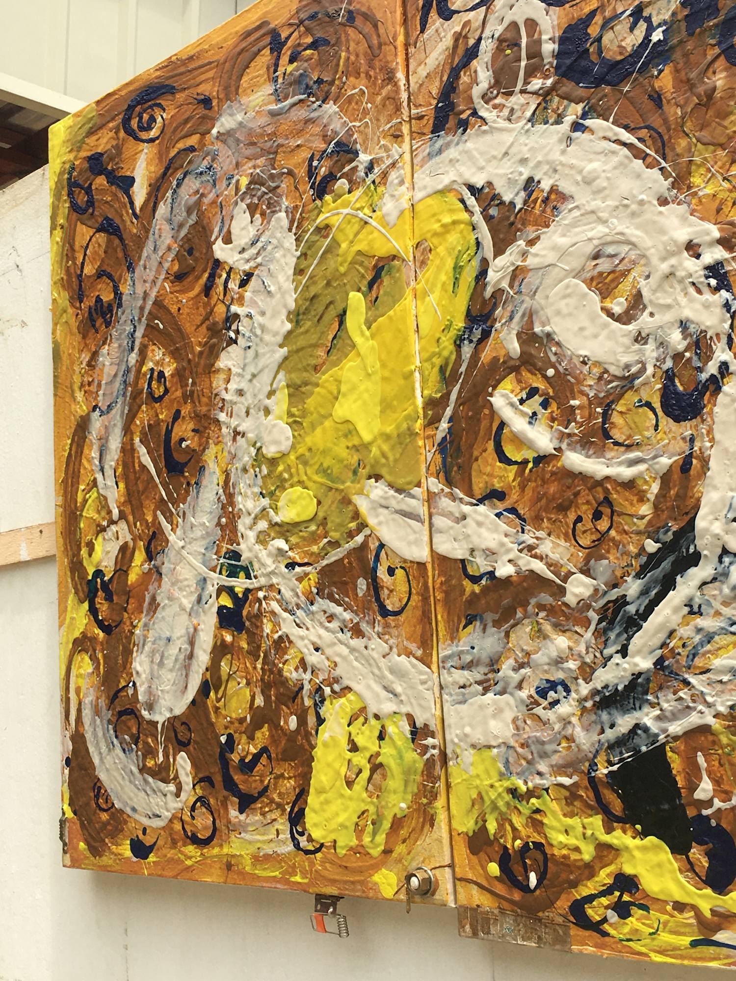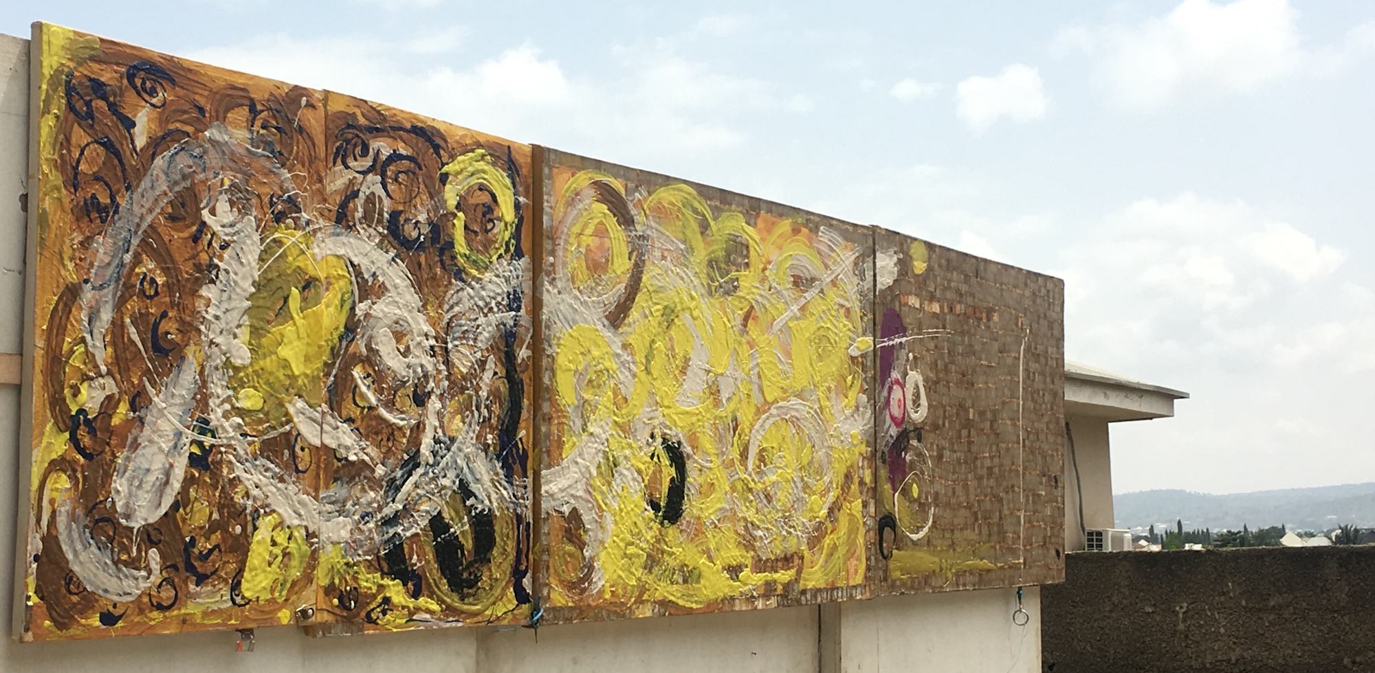 - Collections: 2. Recovered Cork Paper/ Filters from stubbed cigarettes: Materiality, 10. nkụkọ na égwū: Acrylic. Tempera