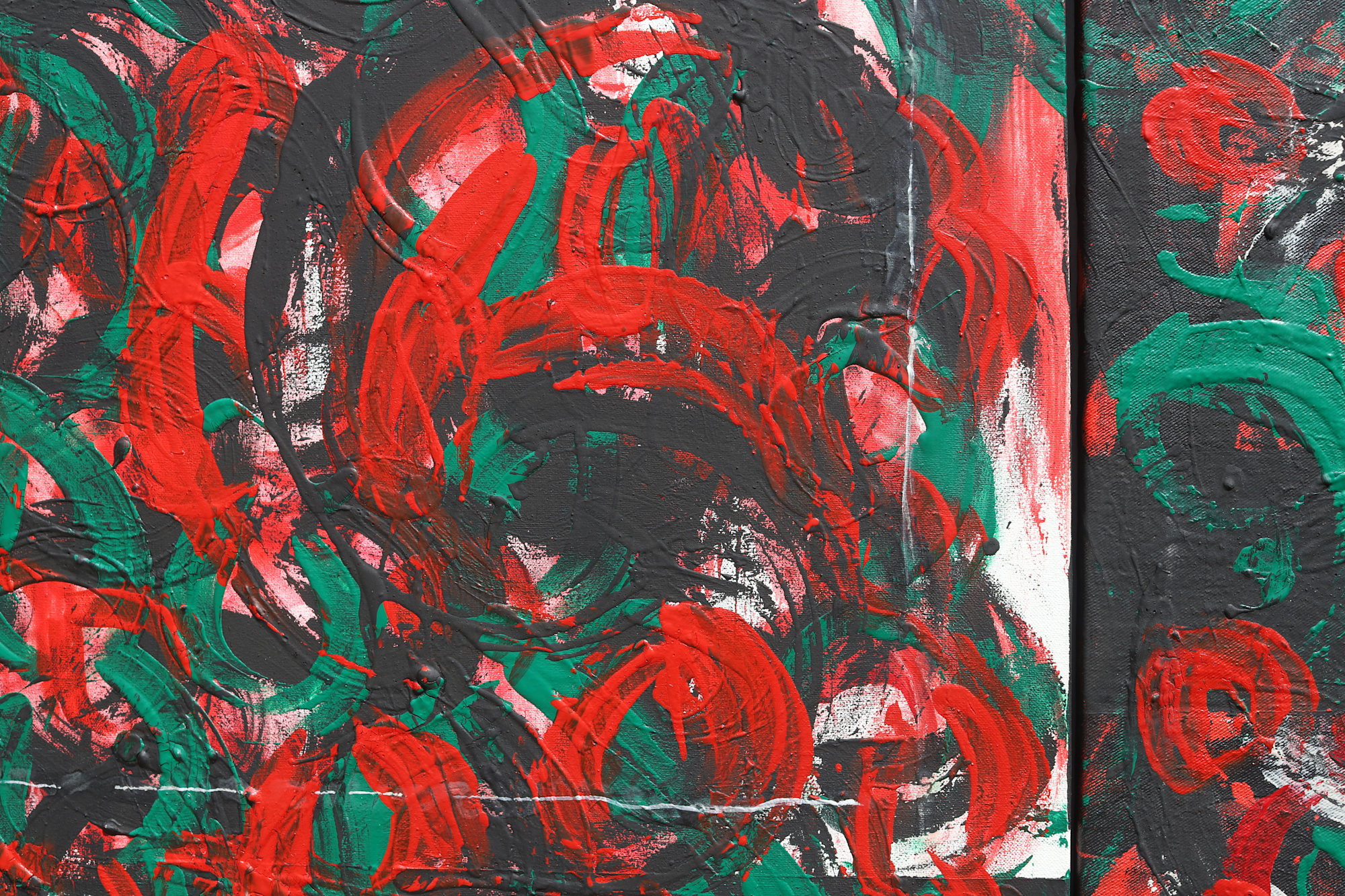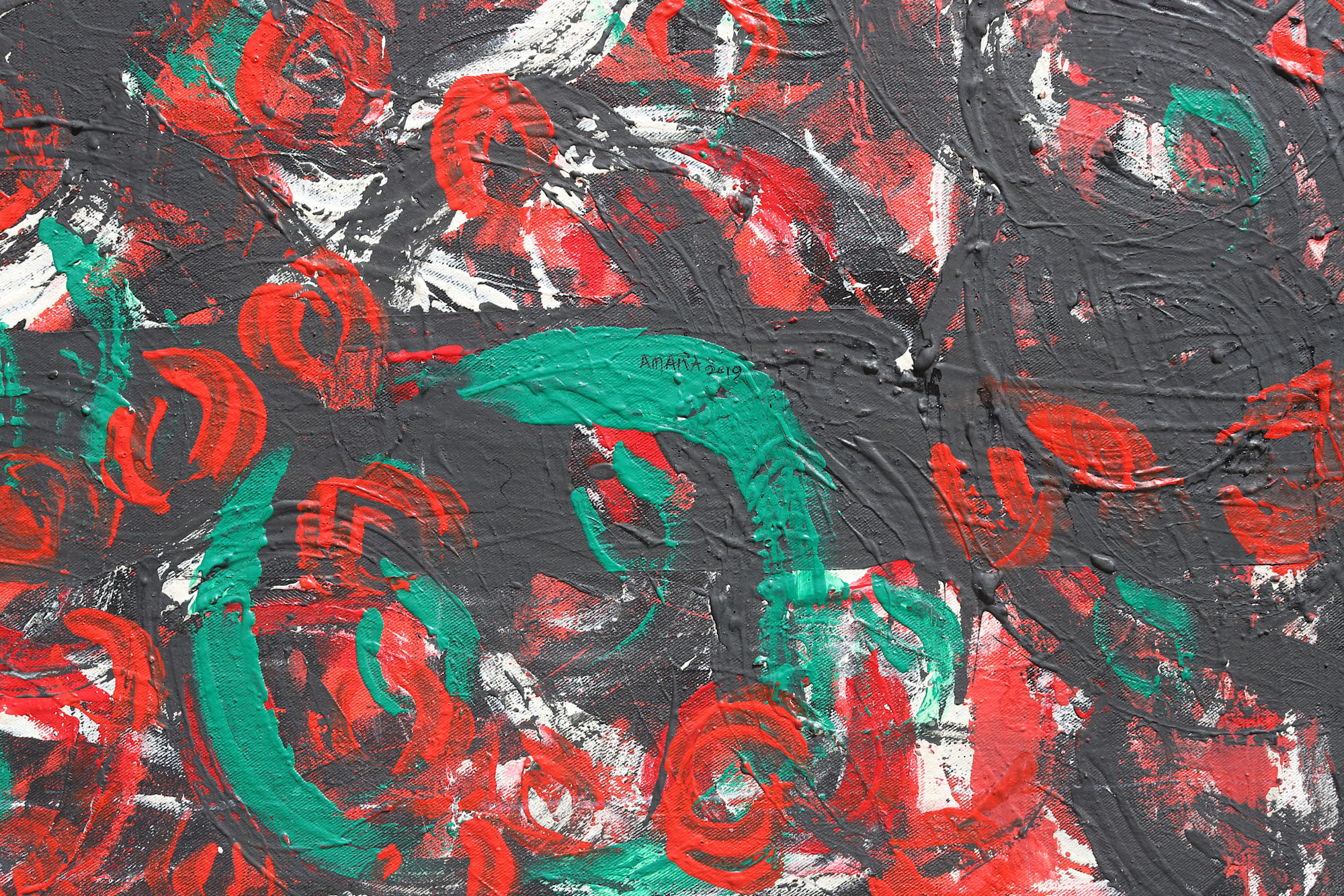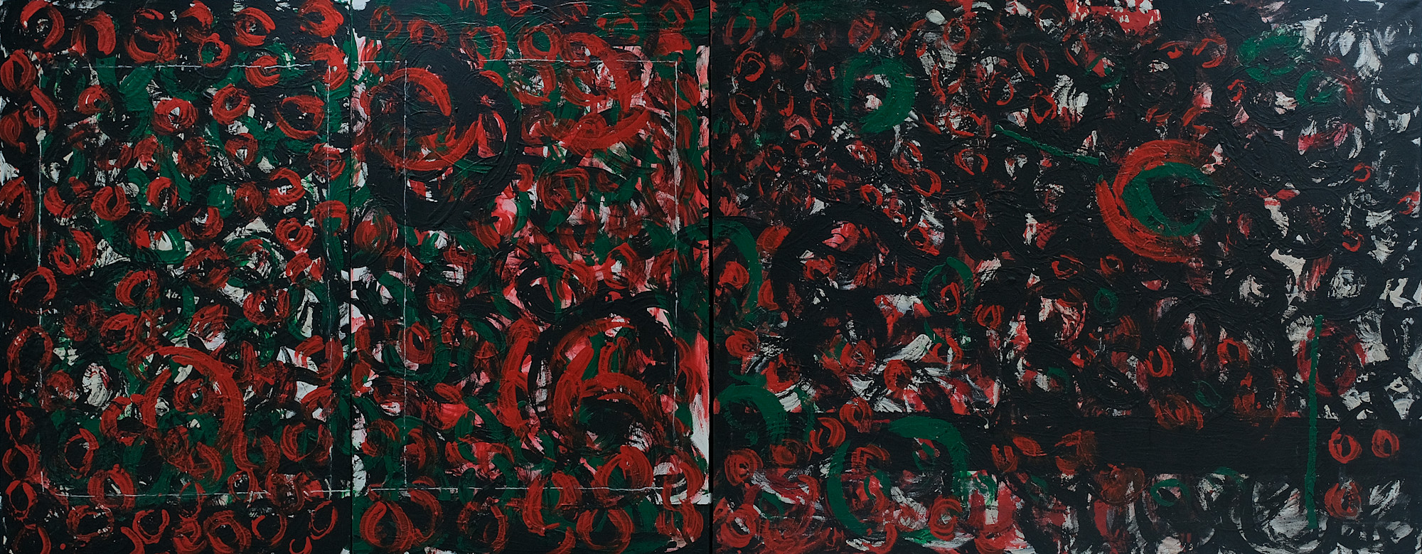 I am presently in a resigned state of mind, and the lustrous movement and radiant colours in this piece show and alternate the situation that the work alludes to, as a staggering instruction to all those who have lost hope, to Cheer Up."