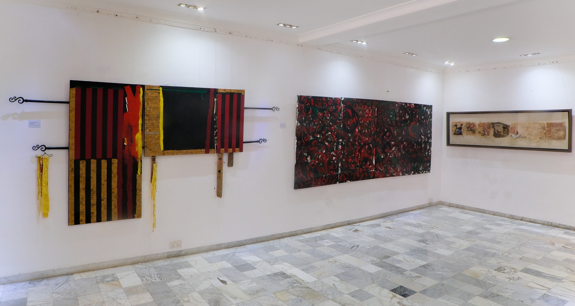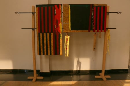 Fabric, Found objects, Metal, Acrylic on canvas.