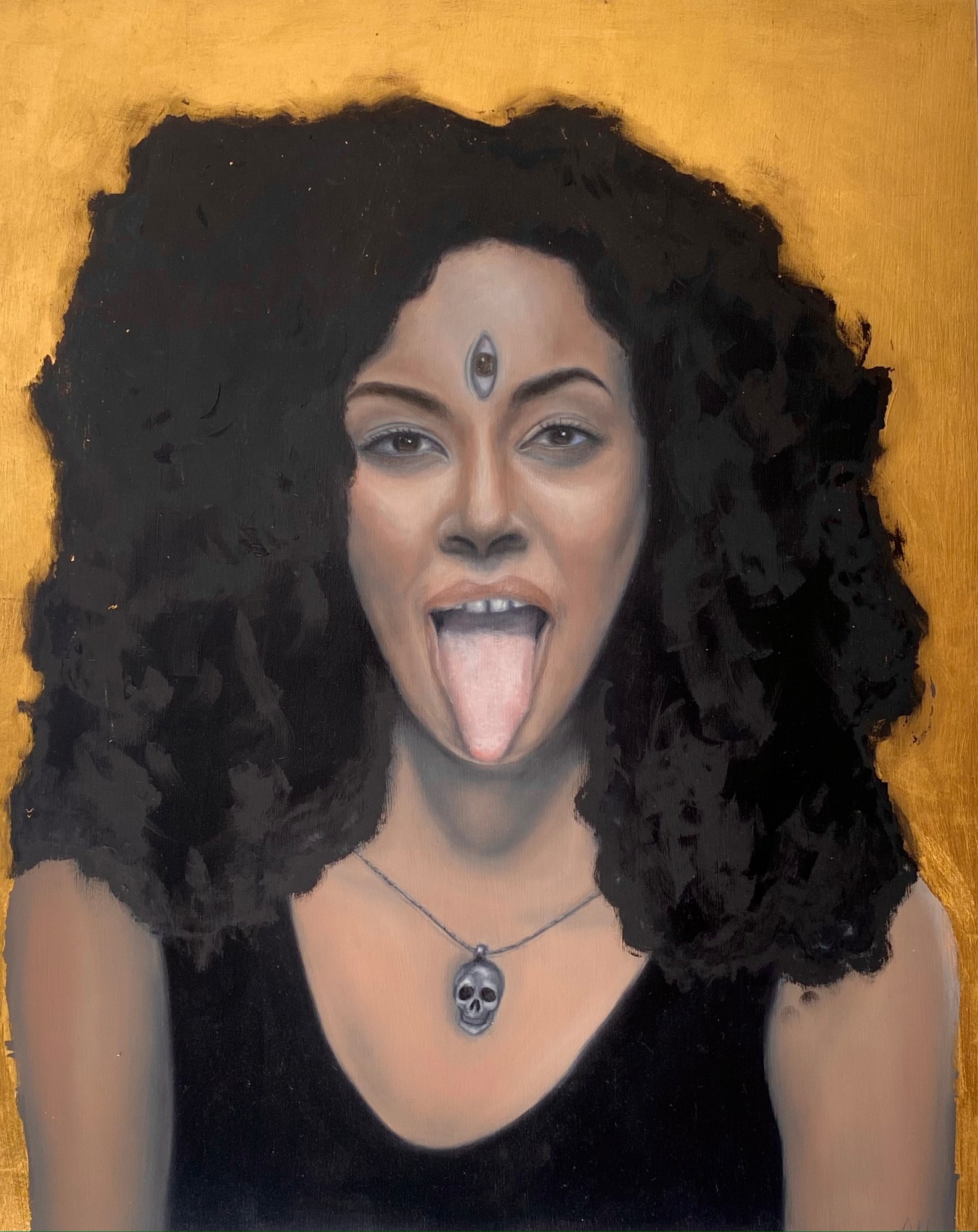 I created this modern take on Kali to remind myself and others that the Divine Feminine is as much fierce, powerful and protective as it is loving and nurturing. And we need all the aspects in our modern lives.