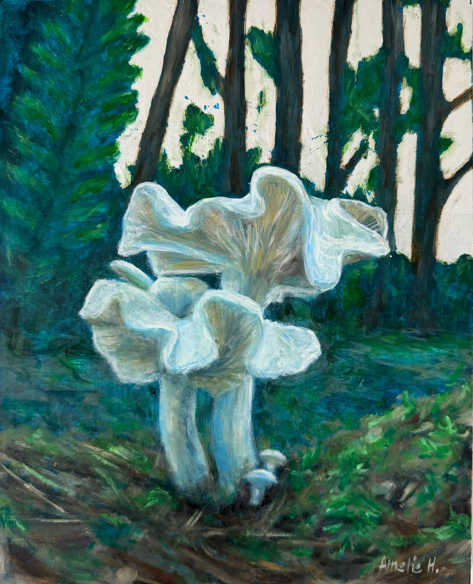 Be transported in the lush forests of the Northwest with this mini mushroom painting, embellished with genuine silver leaf.