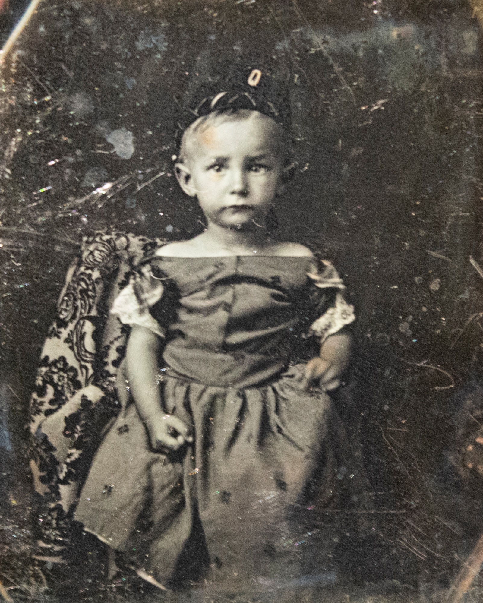 1/6 plate daguerreotype depicting a young child (likely a boy) wearing a forage cap, perhaps indicative of the 79th New York Highlanders.
