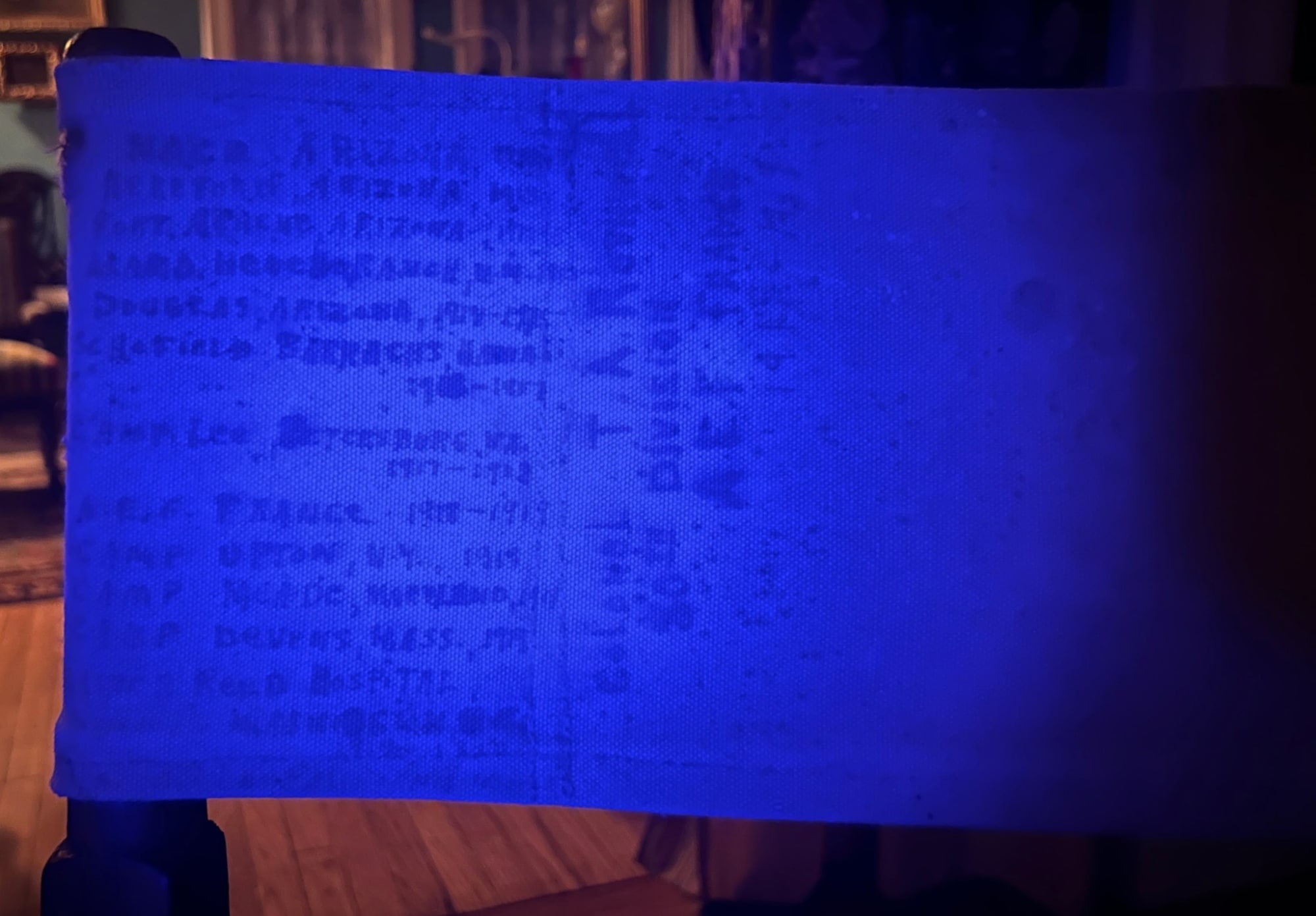 Camp Chair belonging to Lt. Colonel Thomas A. Rothwell. The back of the chair features hand-written chronicles of his service before, during, and after World War I.