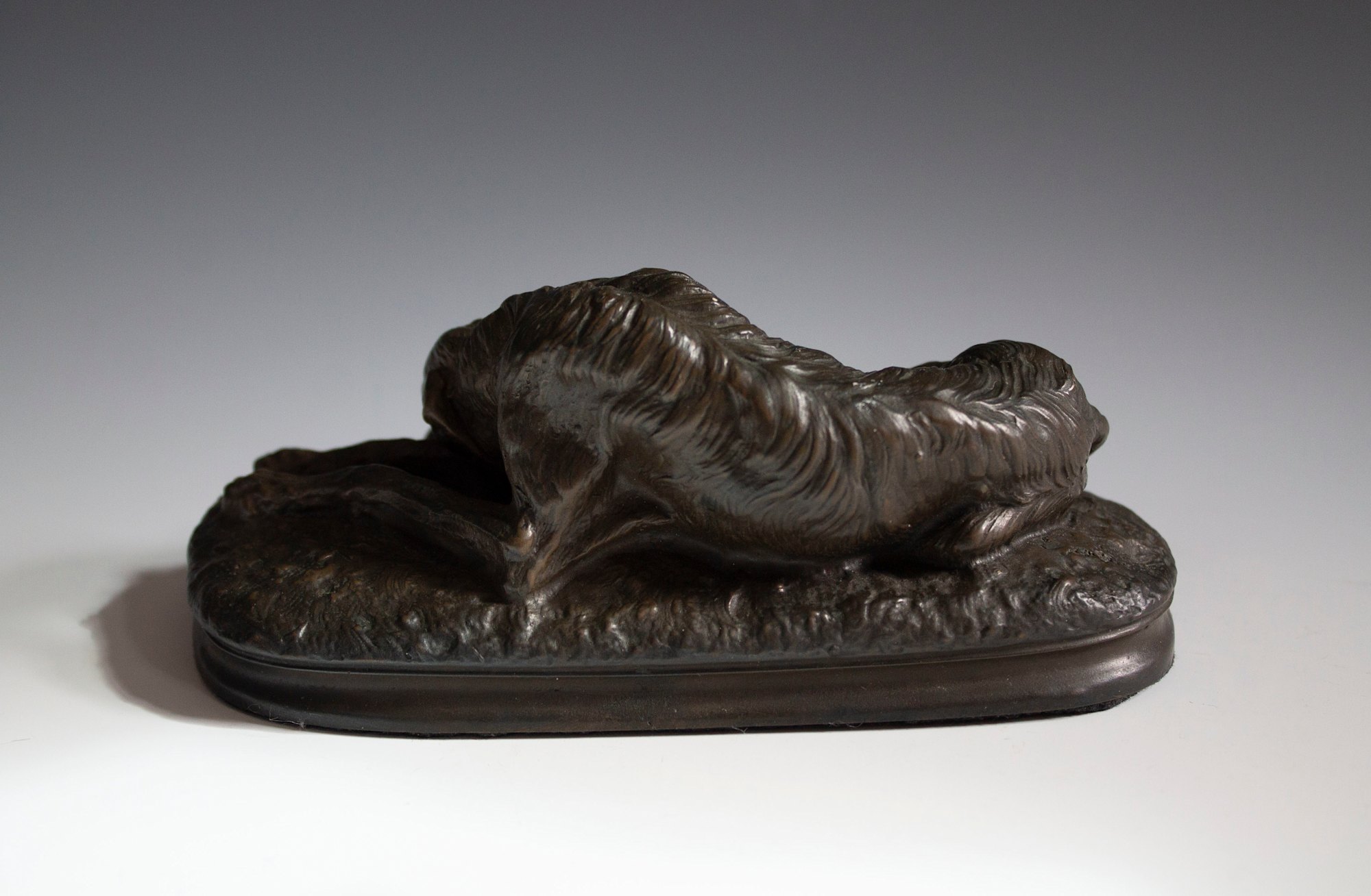 Animalia bronze after Joseph Raymond Paul Gayrard depicting a resting hound.