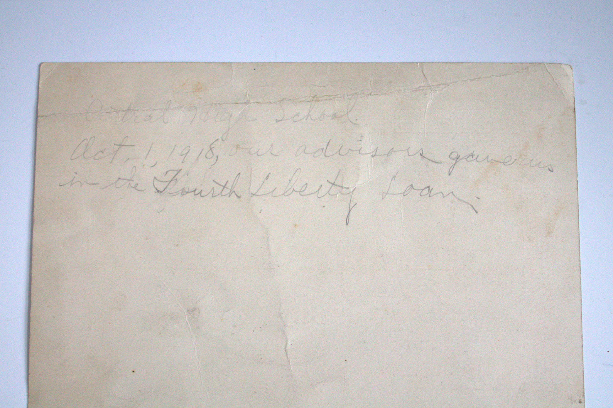 World War I Liberty Loan advertisements from various Liberty Loan campaigns. A note on the verso states that one in particular was given to high school students by advisors at Central High School, October 1, 1918 during the fourth Liberty Loan campaign.