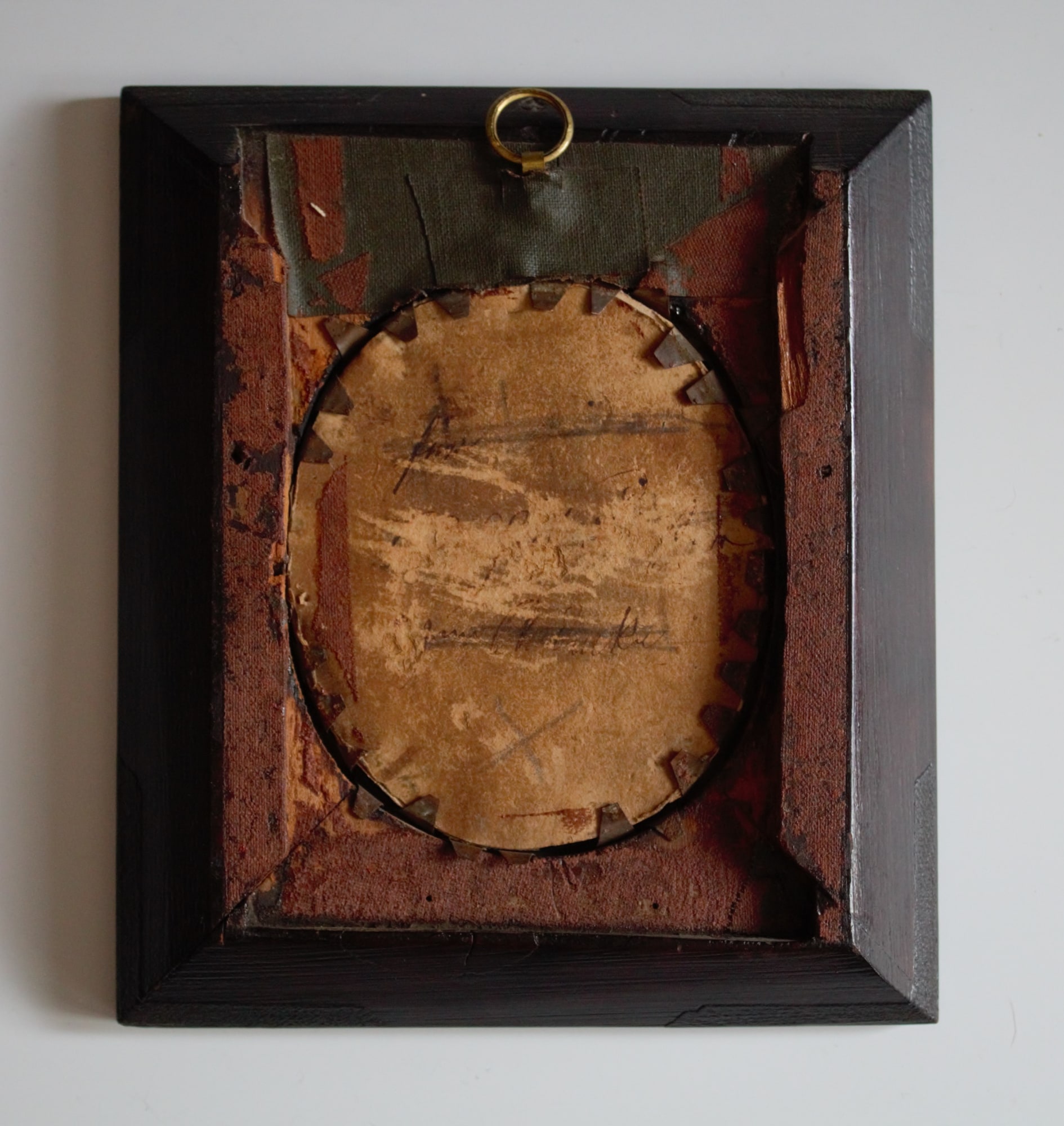 Portrait miniature depicting an unknown woman. Verso appears to have been scratched out, obscuring her identity.