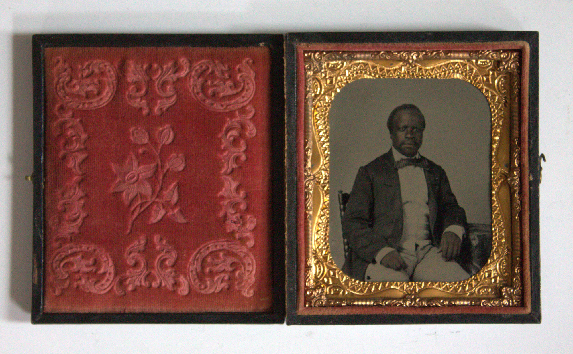 1/6 plate ruby ambrotype depicting an unidentified African American man, likely from Charleston, South Carolina.