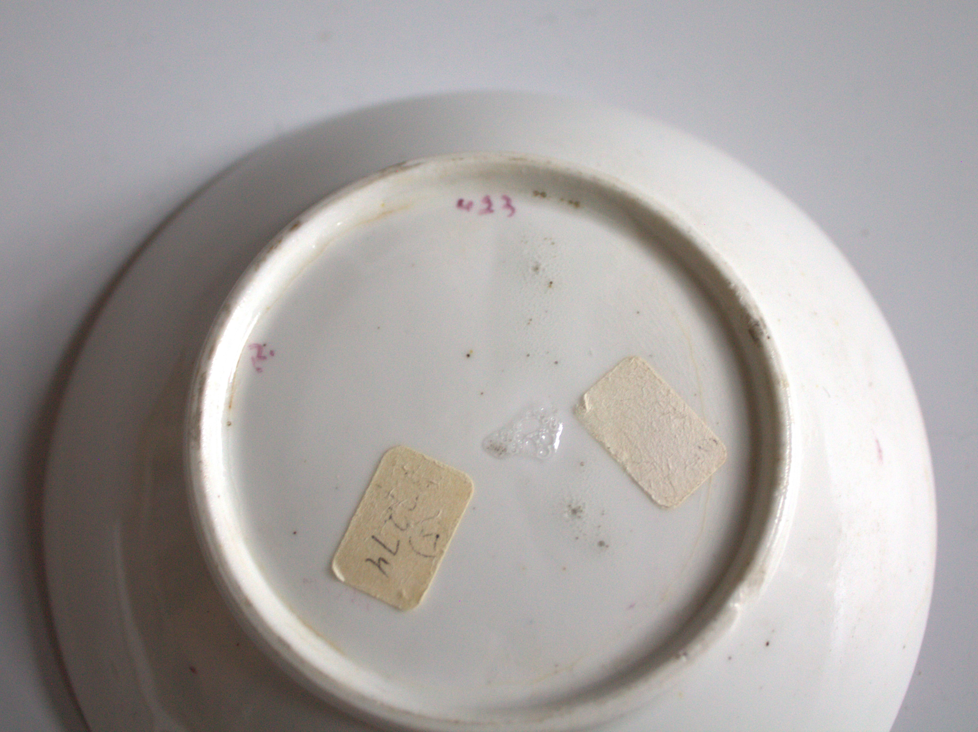 - Signature: Underside (overglaze paint): 'R. / 423'