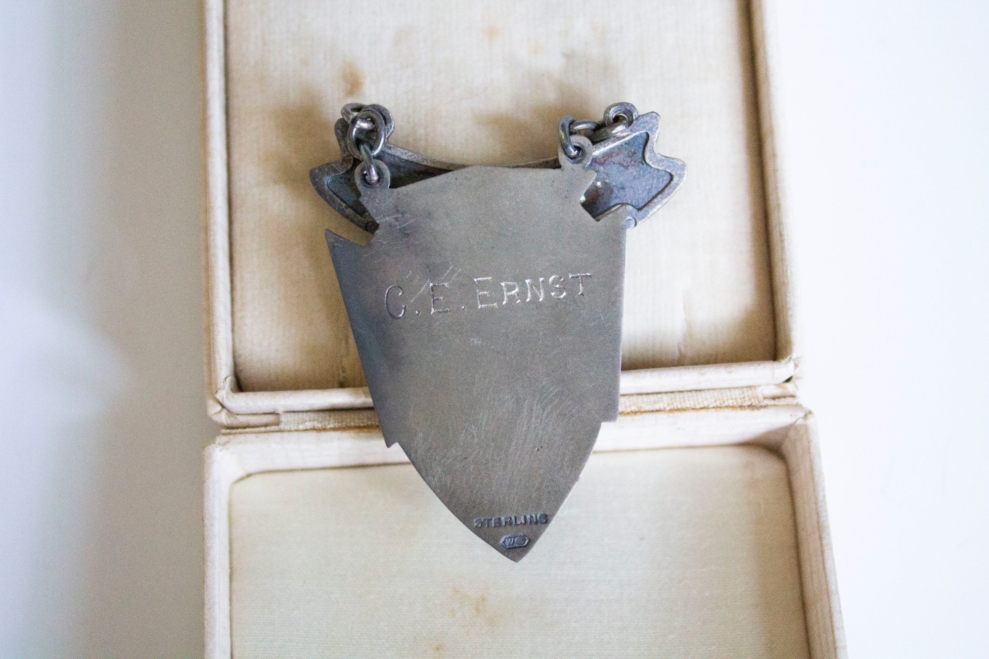 Rochester National Defense Contingent shooting medal for 2nd place to Carl E. Ernst. The medal was likely engraved at E.J. Sheer Jewelers, Rochester.