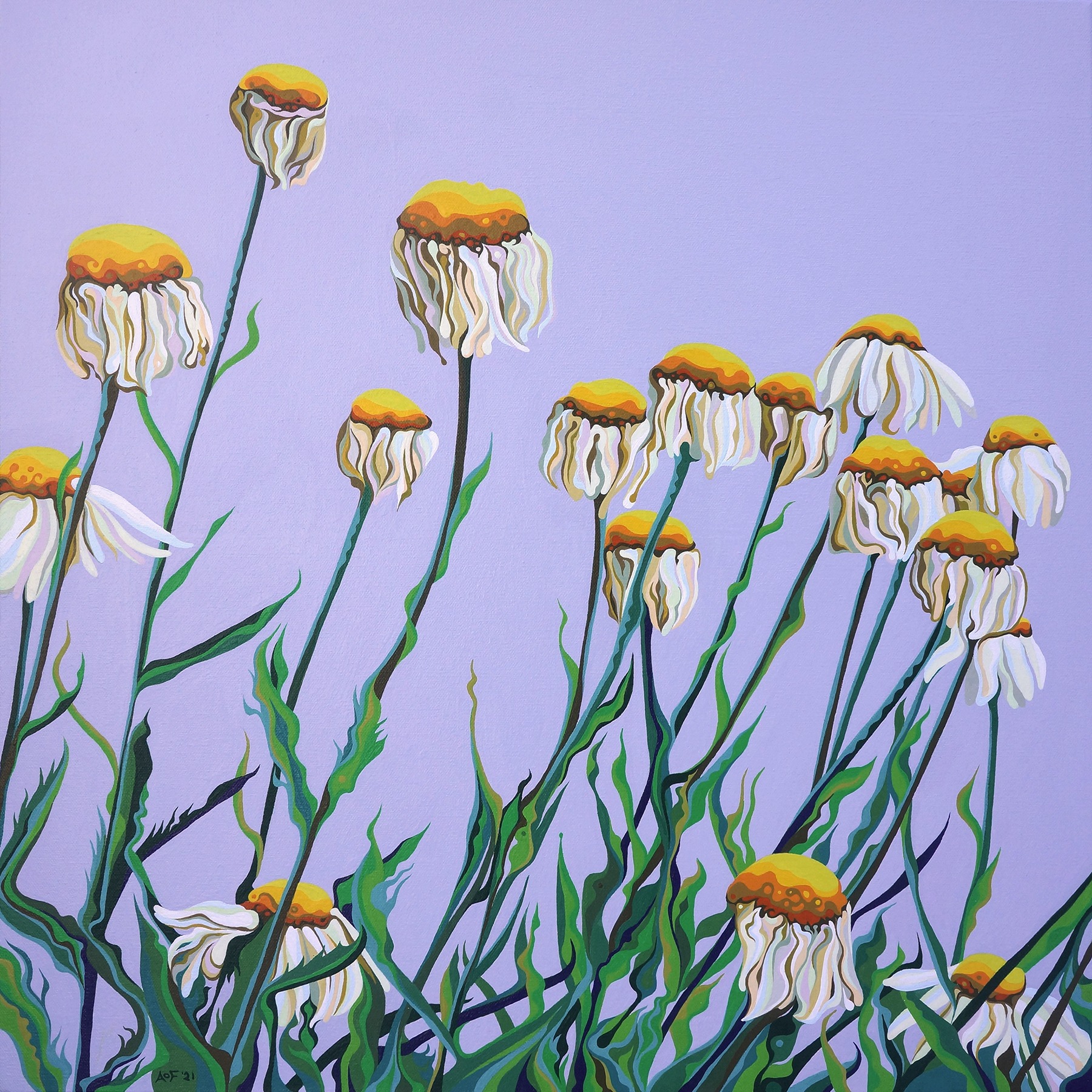 As the daisies near the end of their lifespan, they gracefully address the sun and welcome the beautiful day.