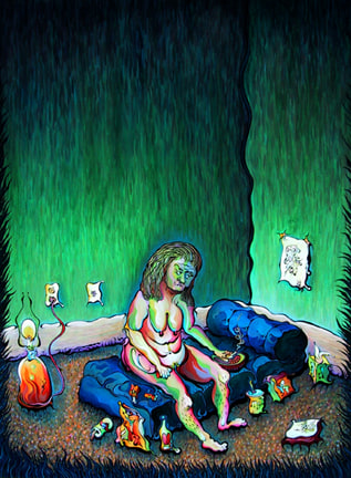 This is not necessarily a self-portrait. It is based on a drawing I did when I was trying to cheer myself up my taking a look a worst-case scenario. Fortunately, things have yet to get this bad.