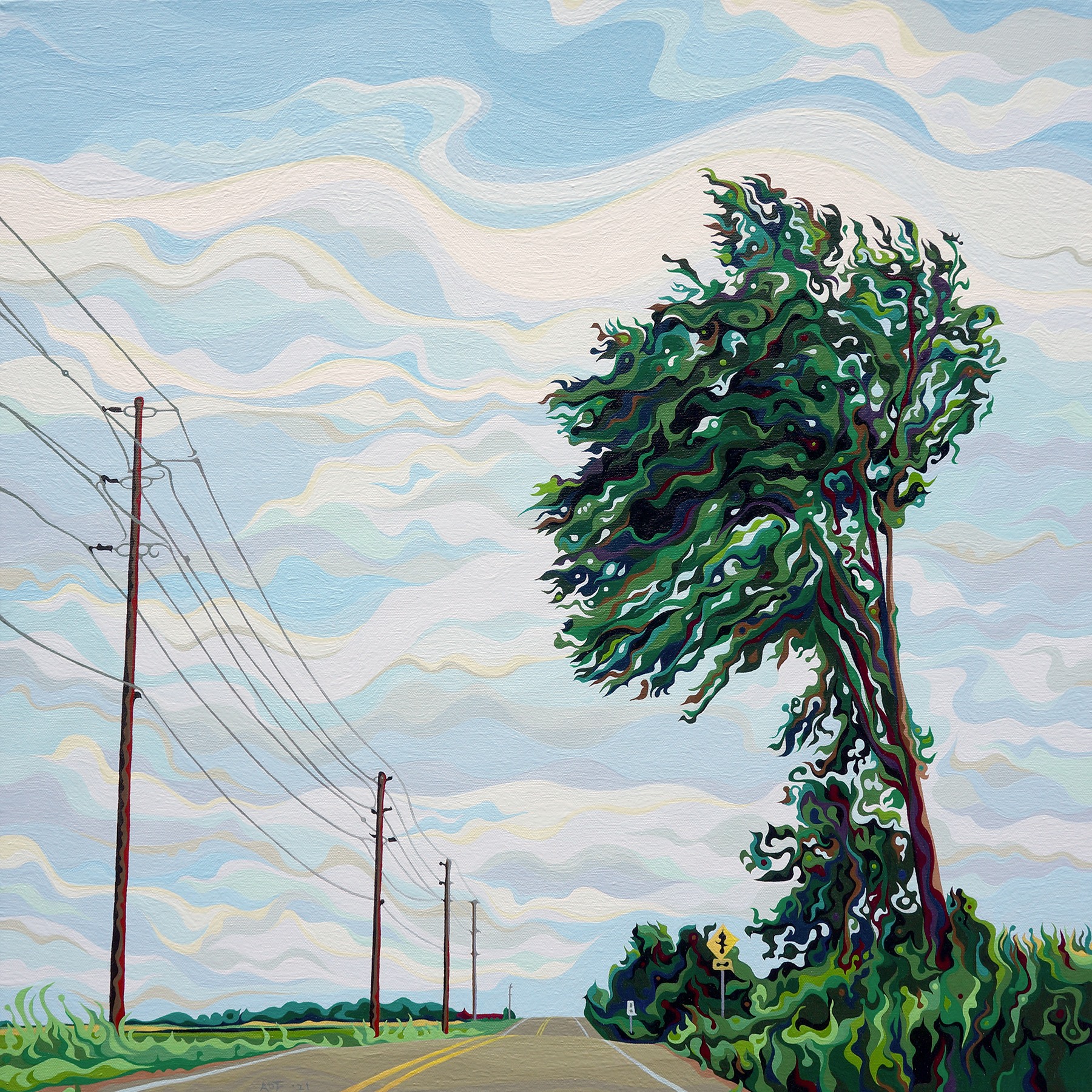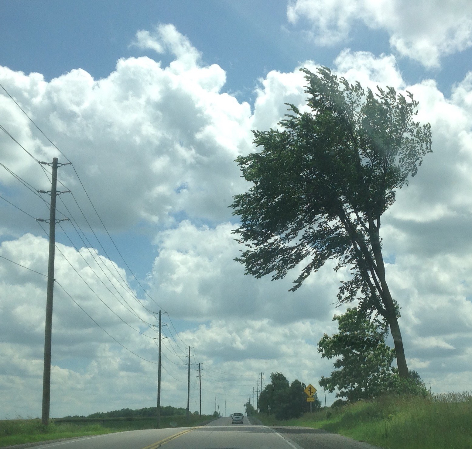 This tree is might and responsible for ushering the clouds along on their way. The road and the telephone line think the tree's methods are outdated, but the tee knows human technologies come and go, and can never compare to nature. The image for this tree was taken close to Heidelburg, Ontario, on Kressler Road between 15 and Benjamin Road.