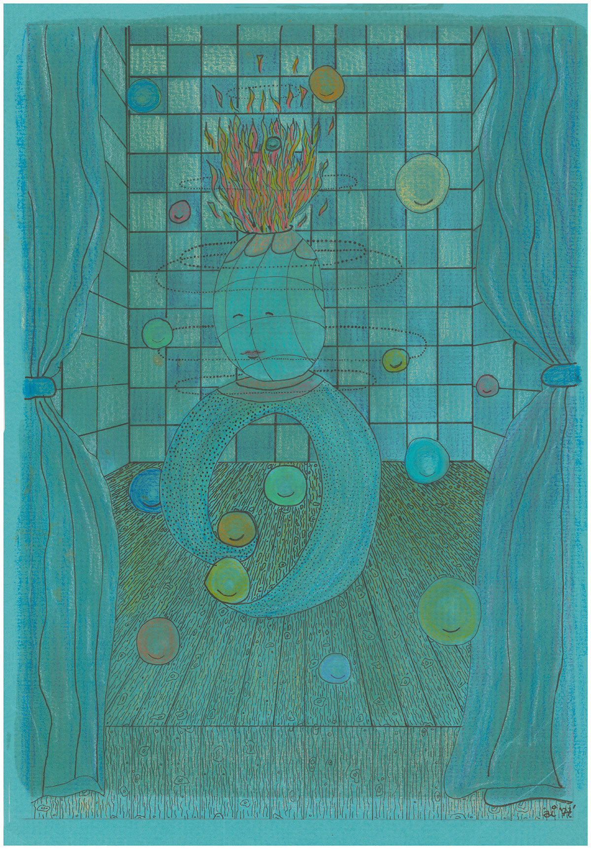 Colored pencil and ink. Measures 8.5x12.25 inches.