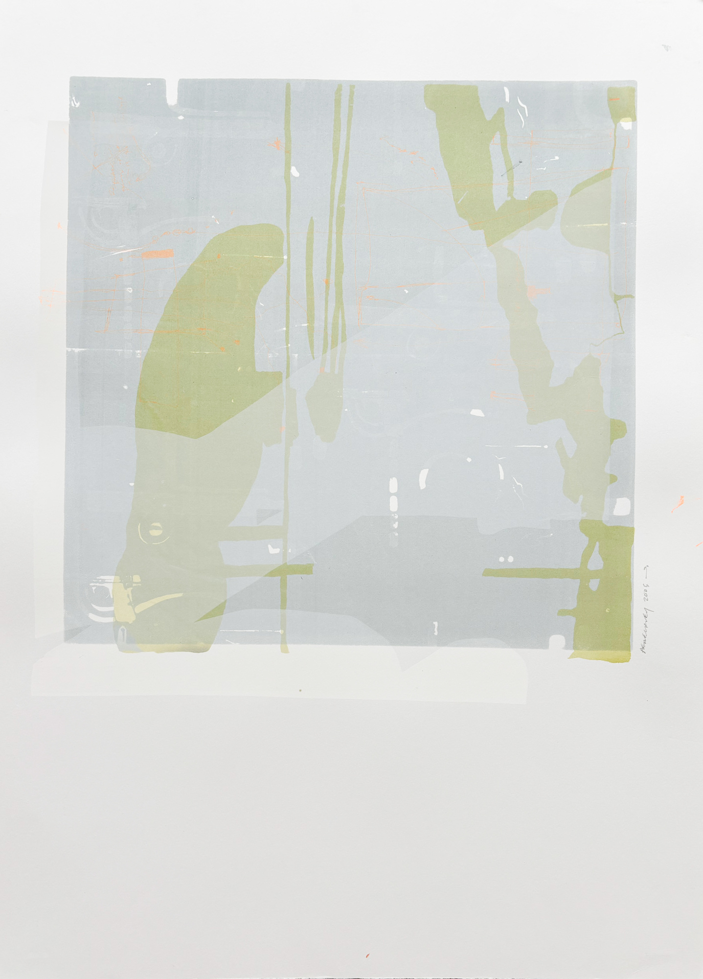 All prints in this series were made from a "library" of 13 screens and a share palette of ink colors; each print is completely unique.