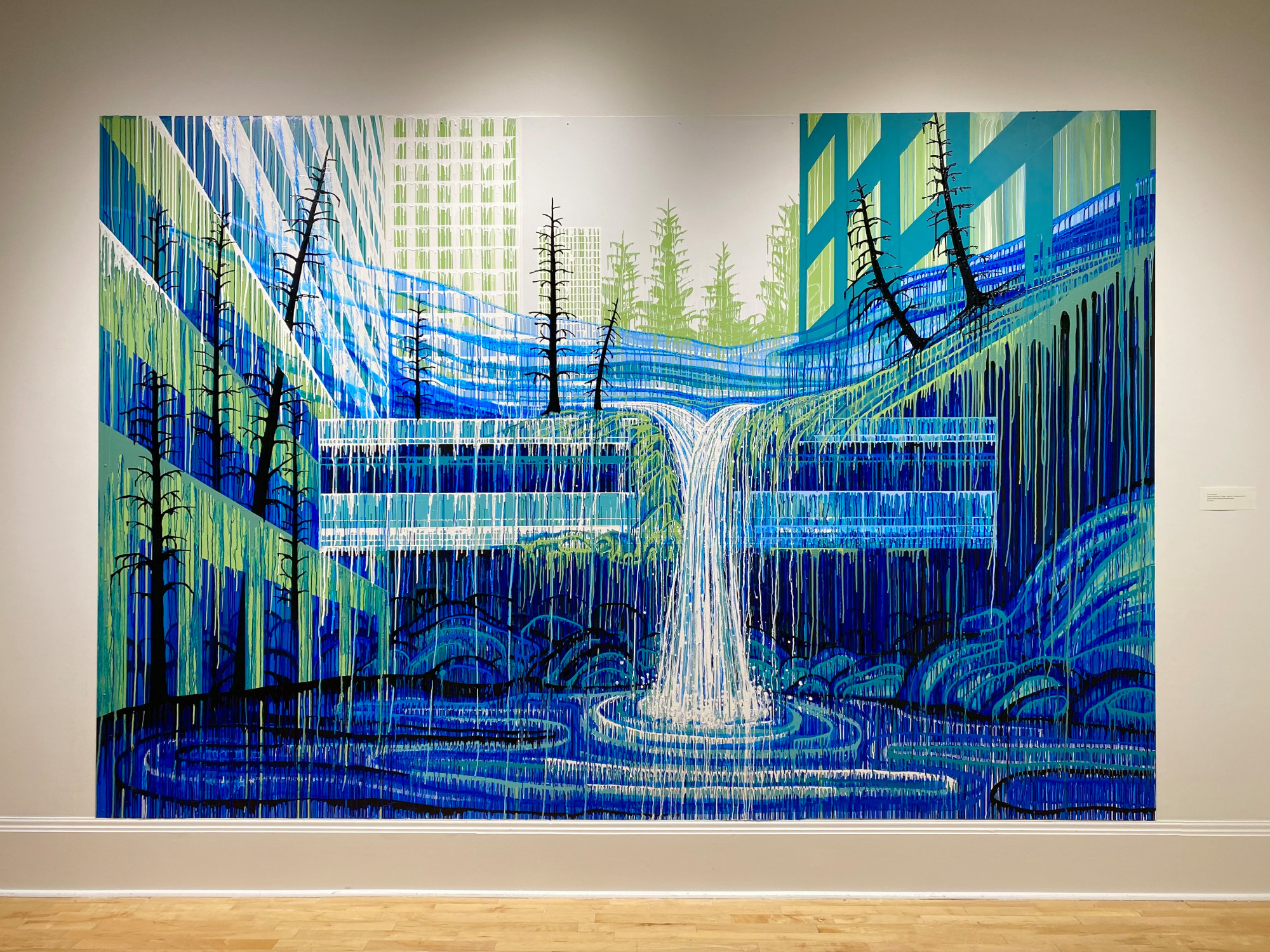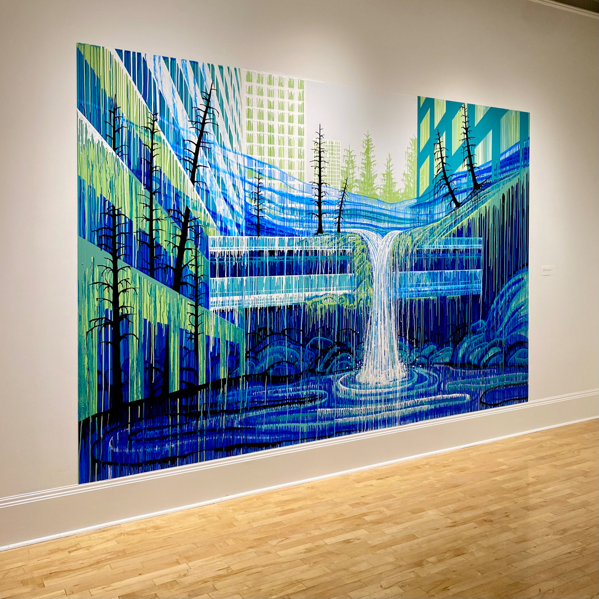 Visitors were encouraged to watch and converse with Shackleton as she created the mural over a two week period. Following the indoor presentation, and in partnership with the AGN, the Town of Cobourg, Downtown Cobourg BIA, Lakefront Utility Services, and a local landlord, the artwork was installed on an exterior wall in the downtown core for a one-year period. Afterward, it was acquired by the Town of Cobourg and re-installed inside the Cobourg Community Centre.