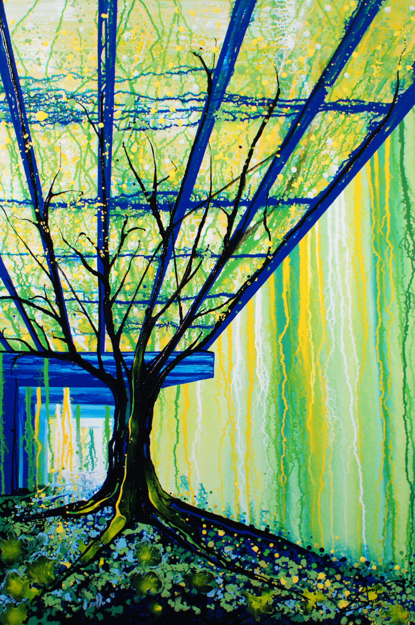 Shackleton drips, pours and layers liquid paint to depict our uncertain future – be it utopian or apocalyptic.
