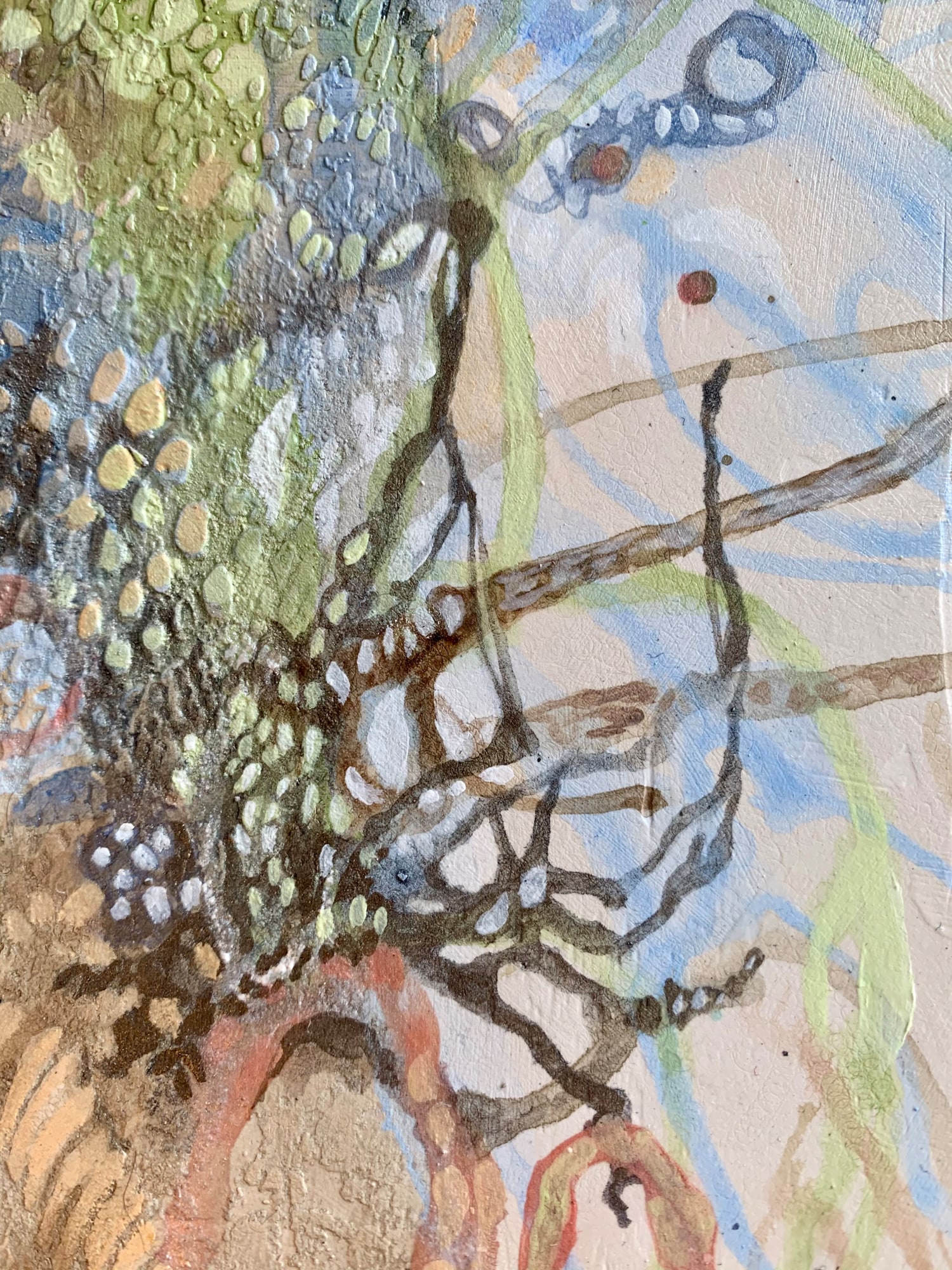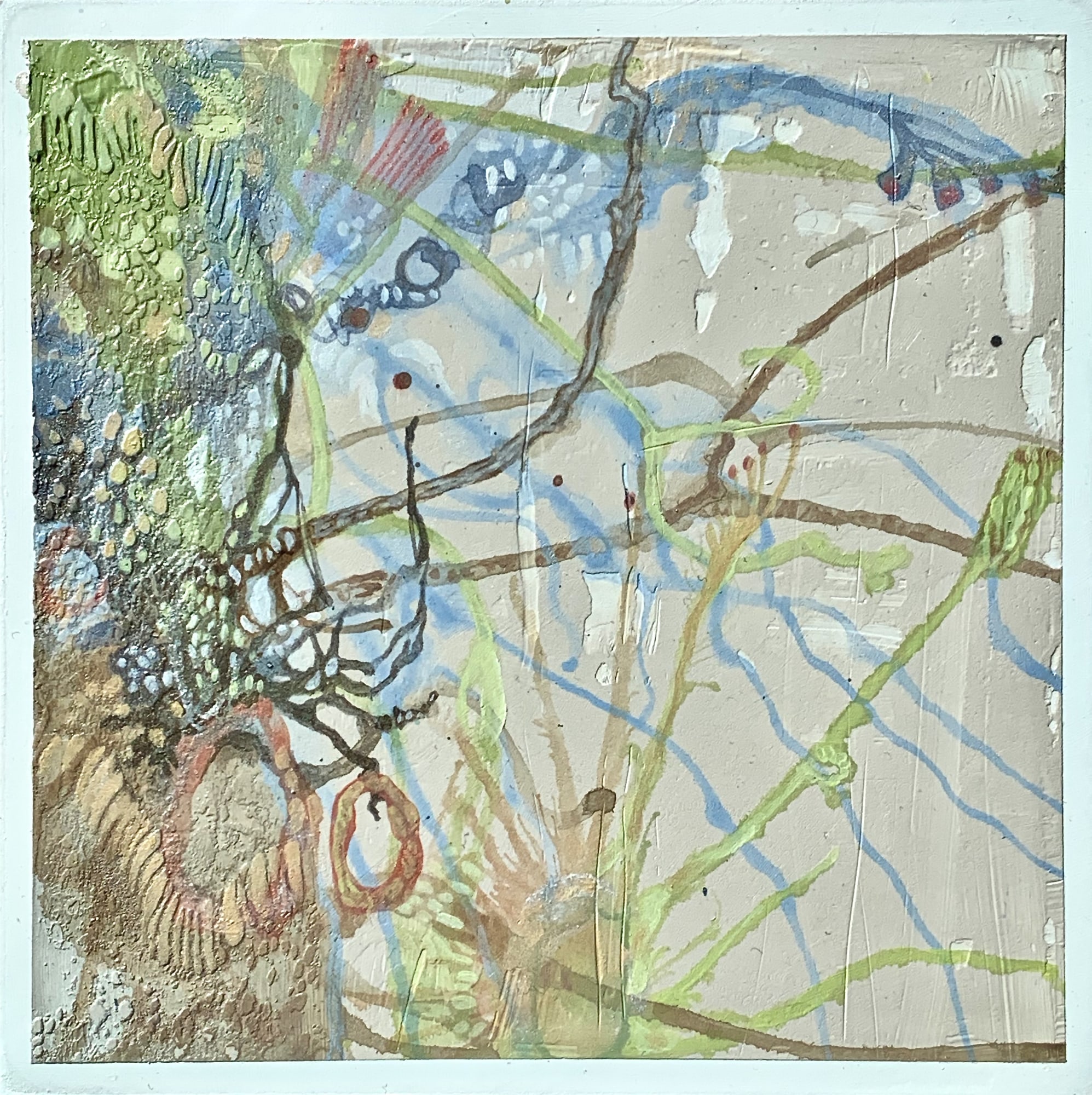 acrylic, India ink, graphite, and Venetian plaster on panel