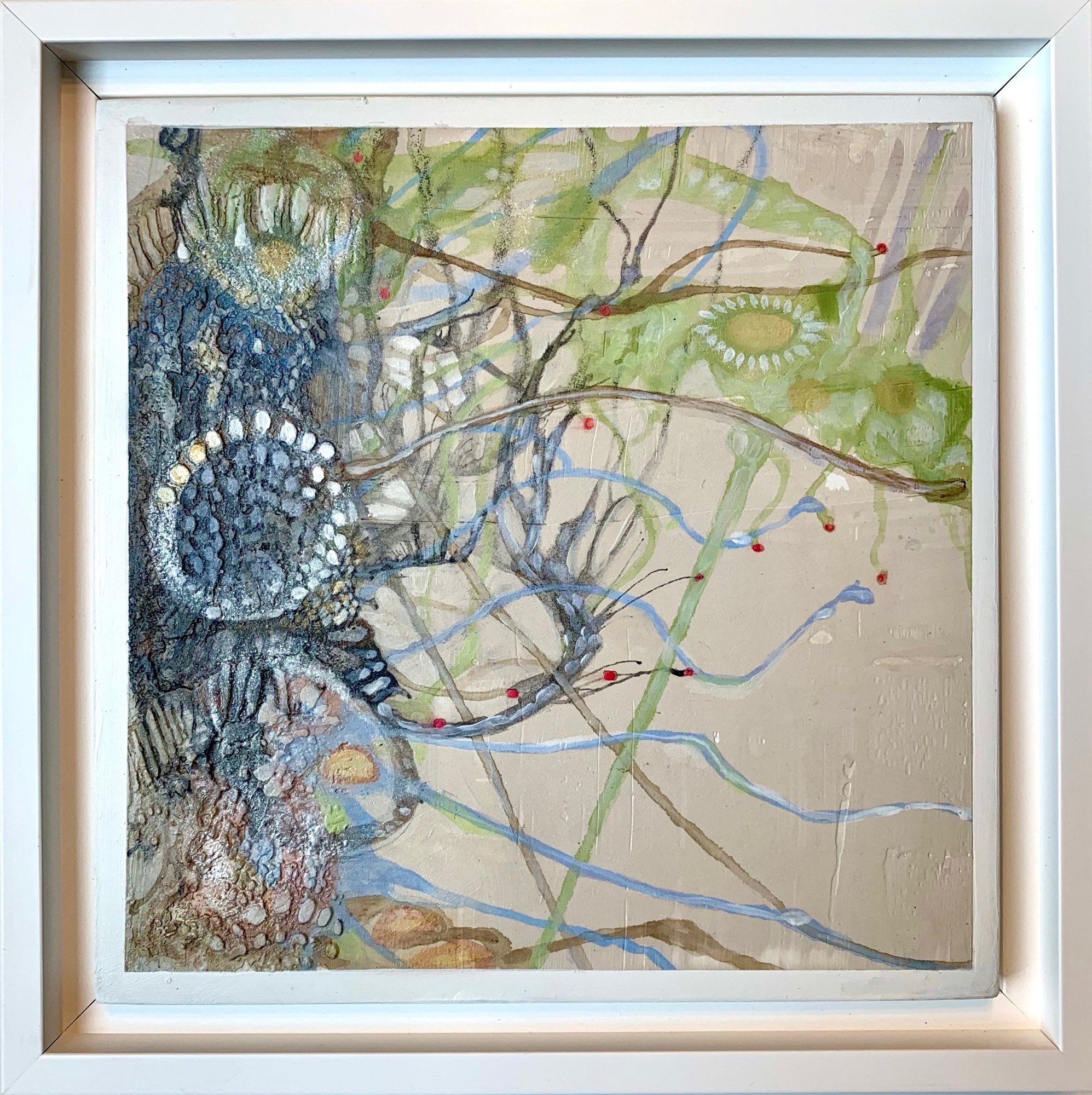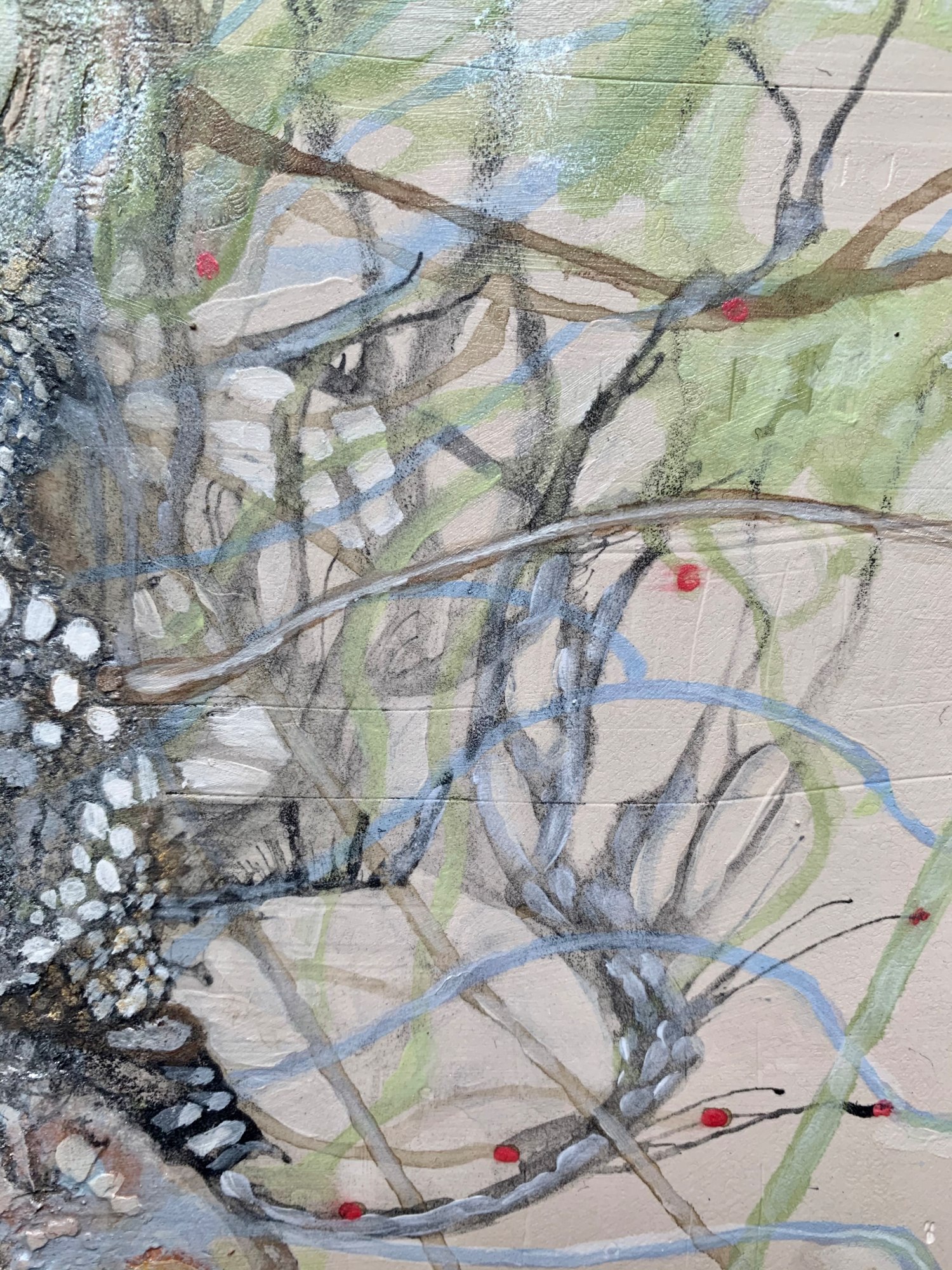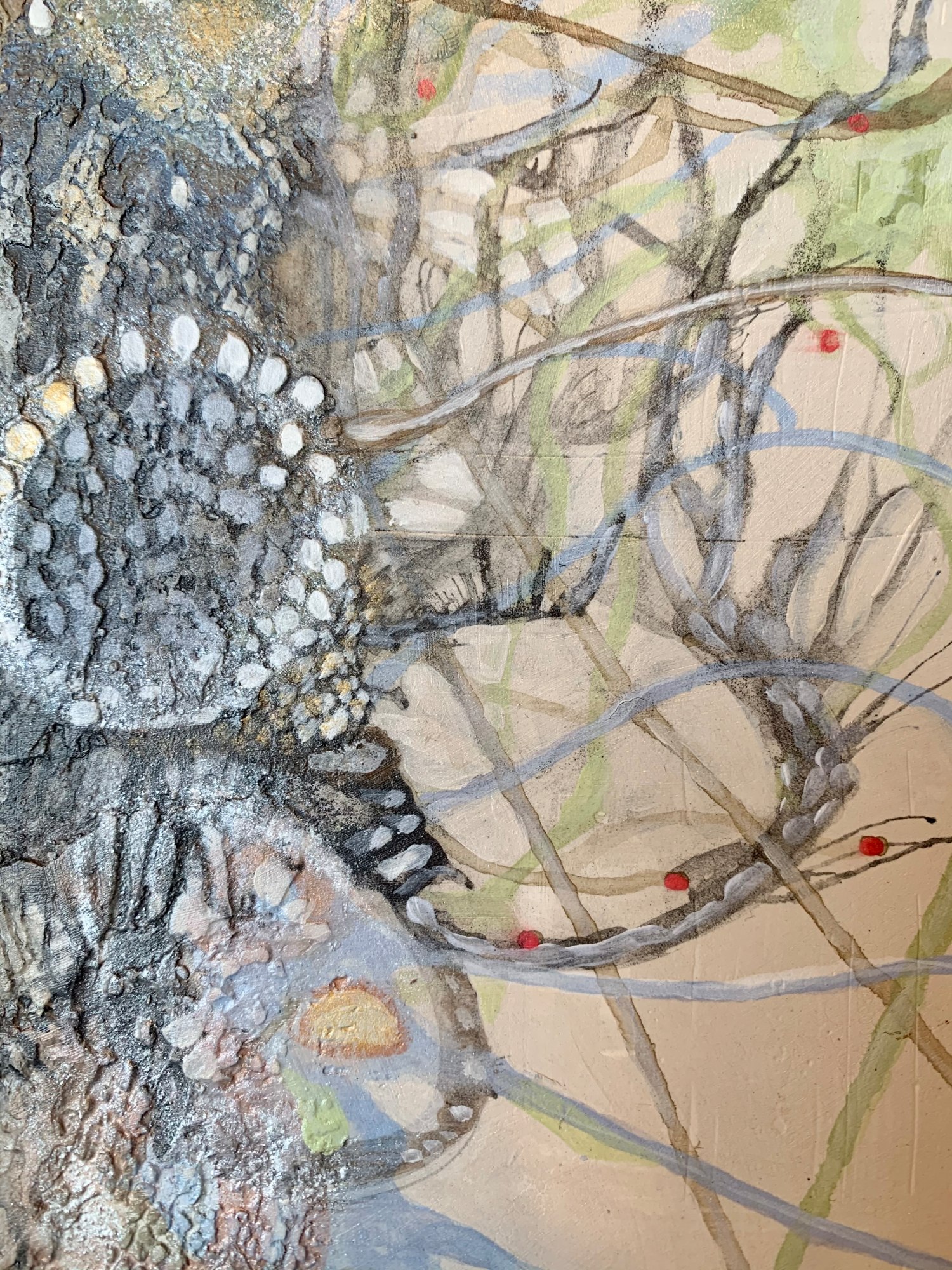 acrylic, India ink, graphite, and Venetian plaster on panel