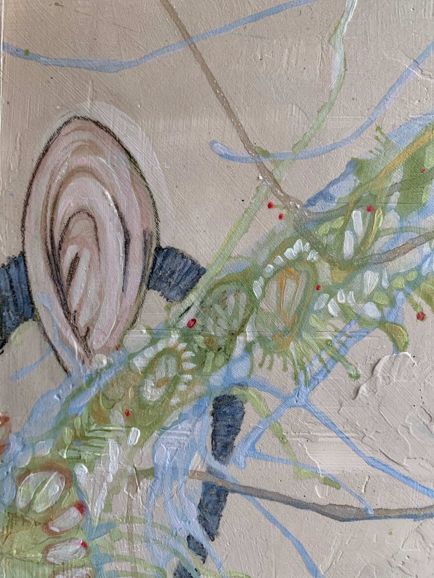 acrylic, India ink, graphite, and Venetian plaster on panel
