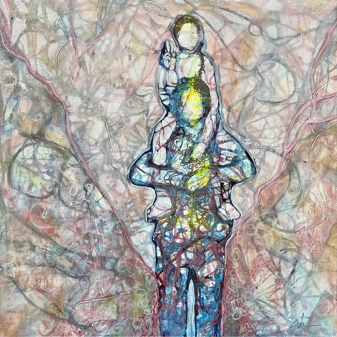 acrylic, India ink, acrylic ink, silver leaf, chrome ink, and Venetian plaster on canvas