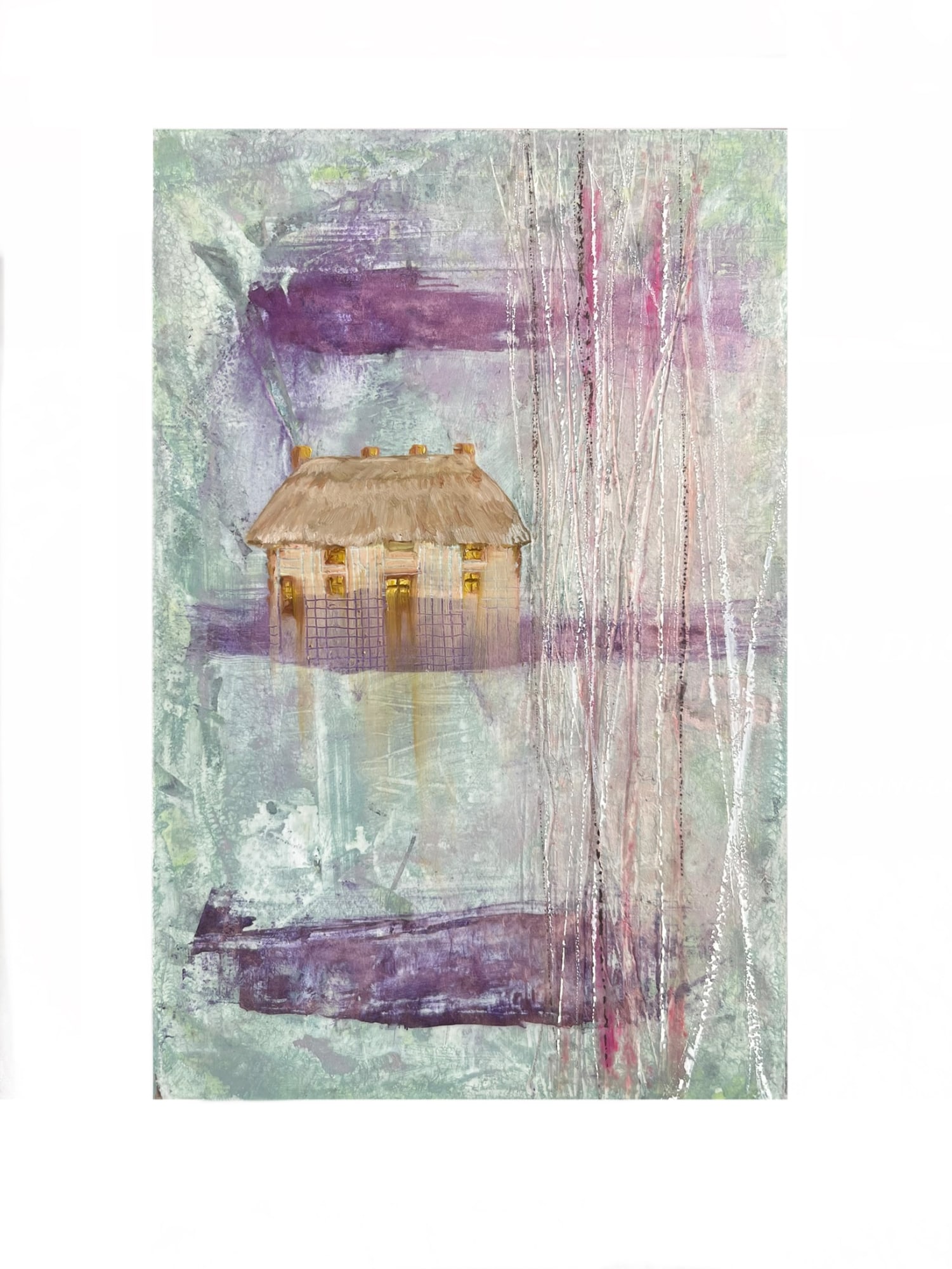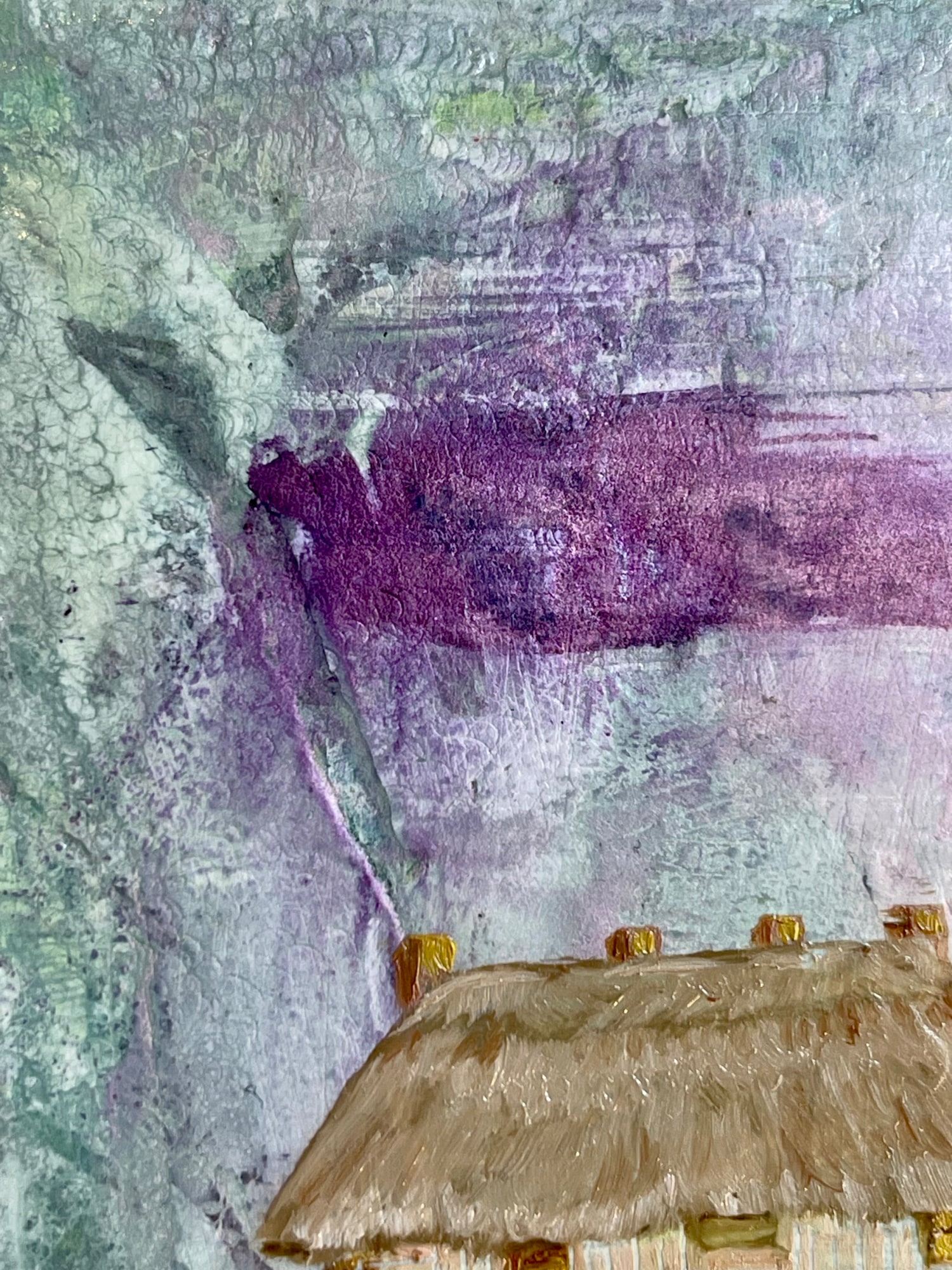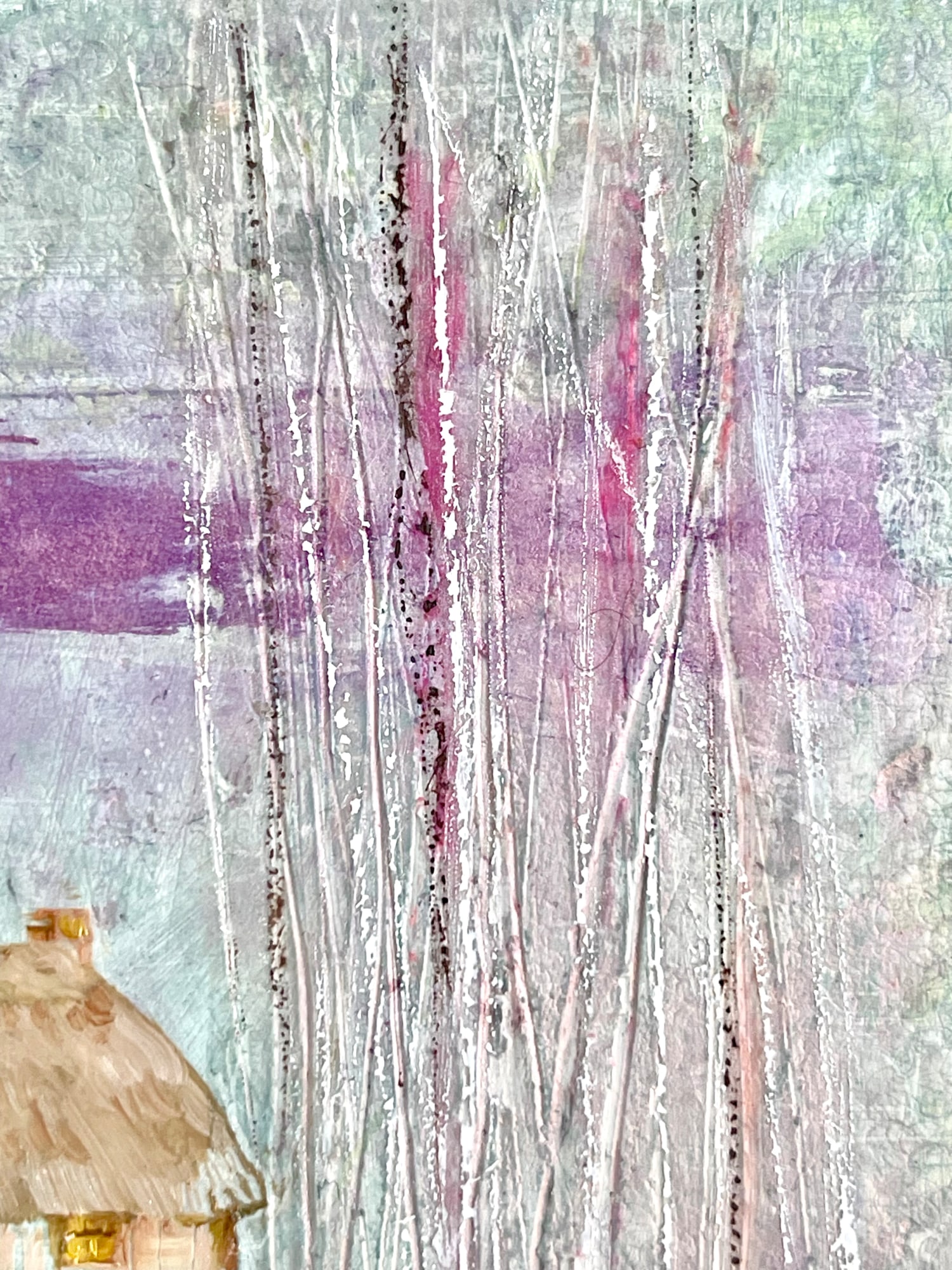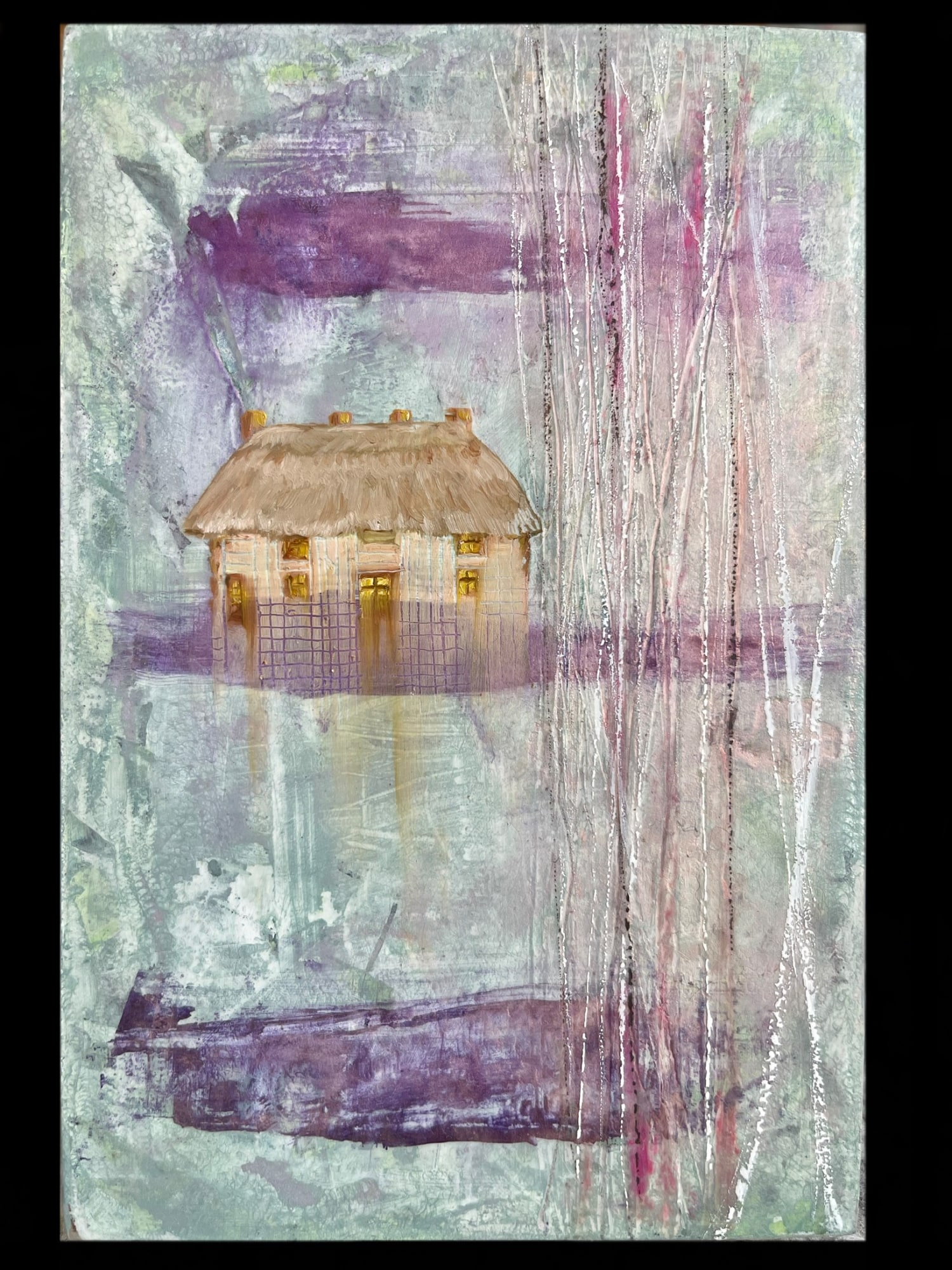 acrylic, India ink, cold wax, oil pastel, powered pigment, and water soluble oil on panel