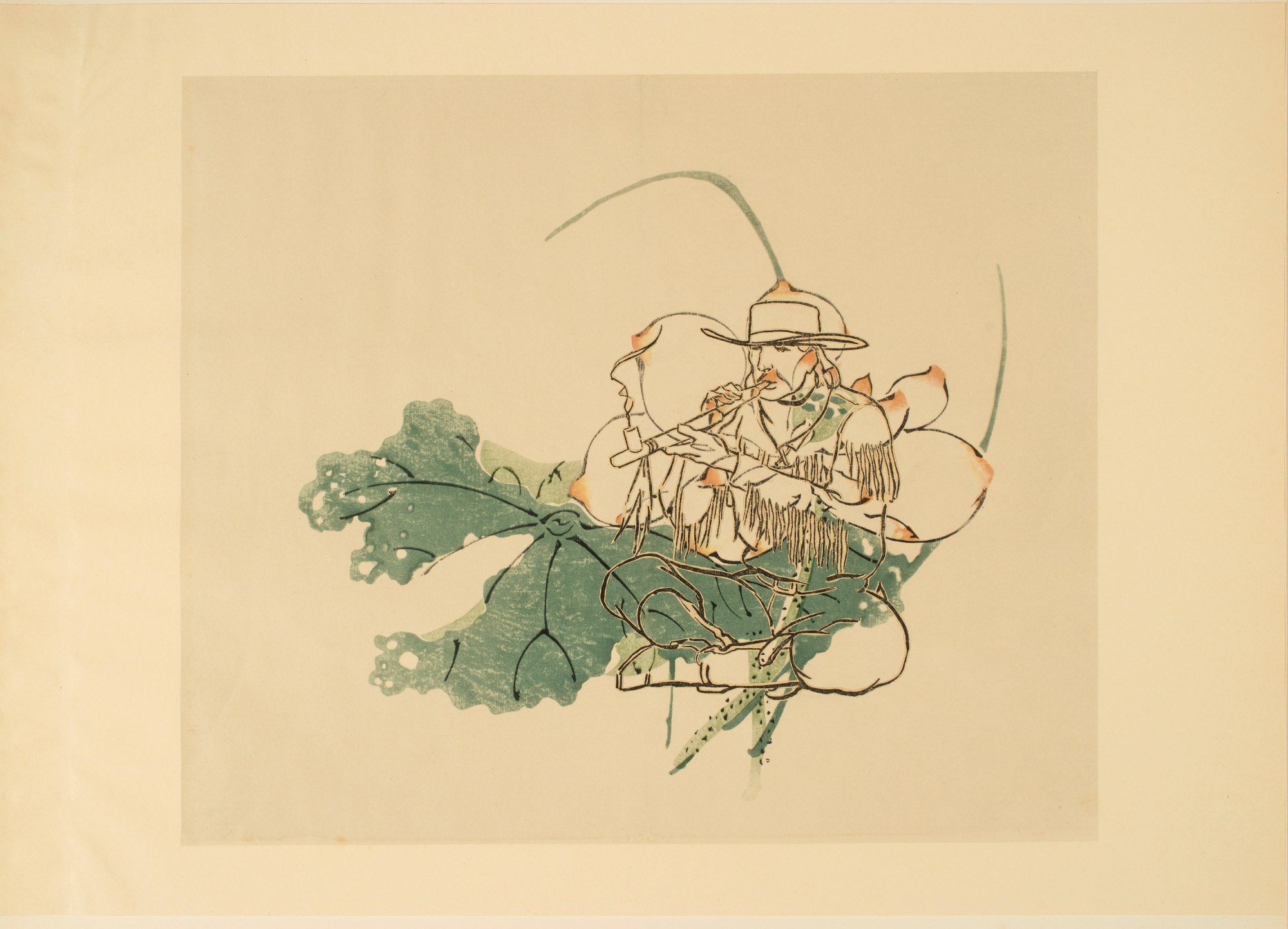 hand-cut and pasted vintage printed paper on found vintage lithograph