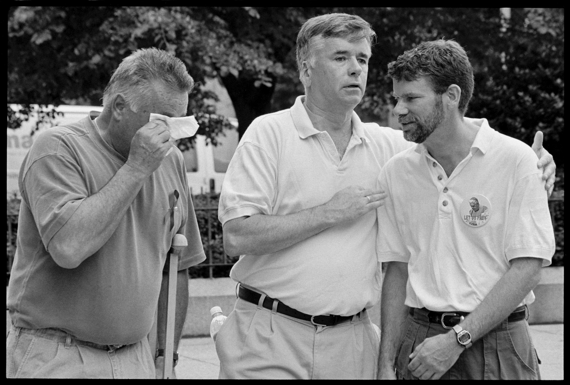Skip Harrington, Bill Gately and John Harris are among the many survivors who marched to the Cathedral to tell their stories publicly. "We are the personification of the systemic problem of the Catholic Church," Gately said. Boston, Mass., June 2002