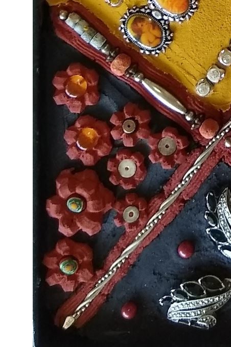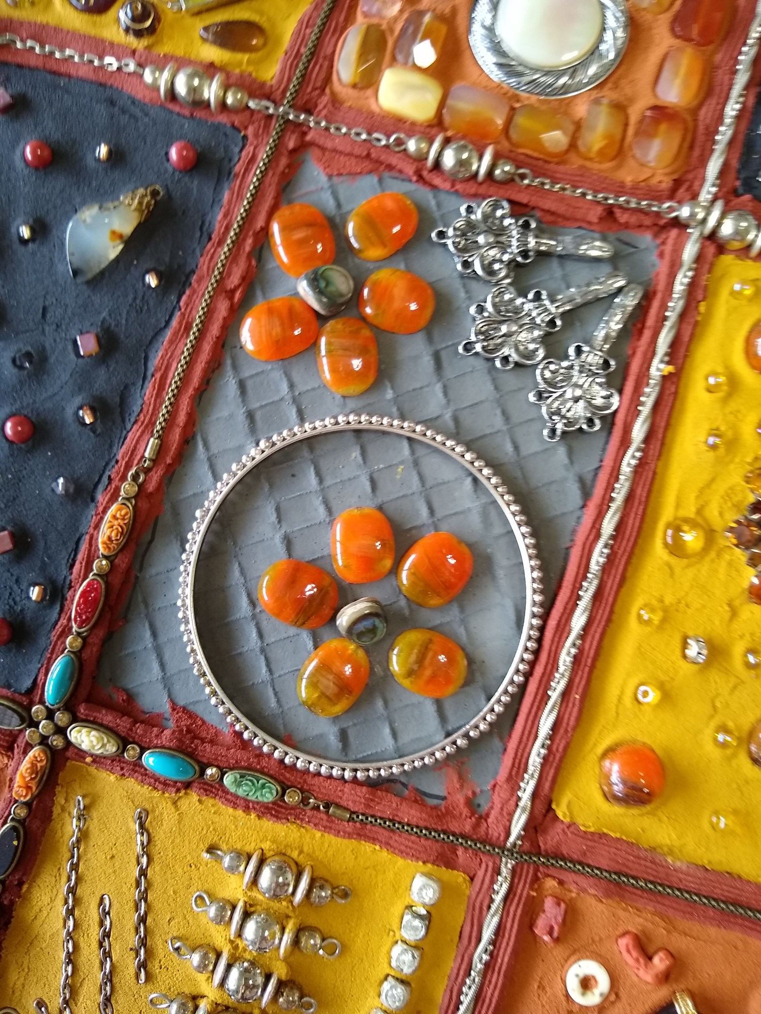 Compartments - that's how I visualize material things. "Processes" are much more complex - they are circular and redundant. So this mosaic is one static view of my mind which, of course, is never really static. Found items are good quality silver and gem stones. Custom steel frame by Victor Quiros.