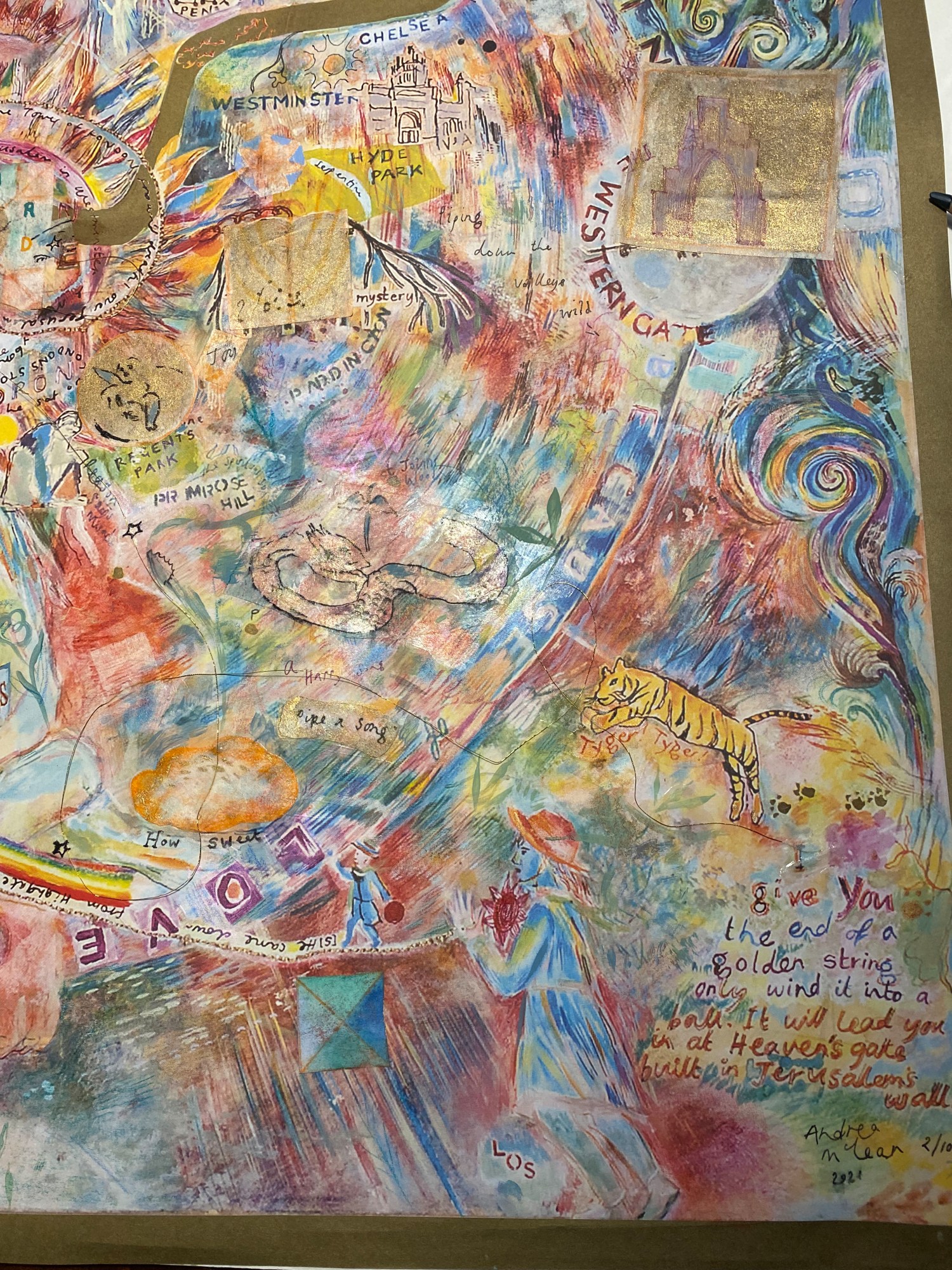 Detail of the map including some of the new, collaged, painted, written & drawn elements. No. 2/10