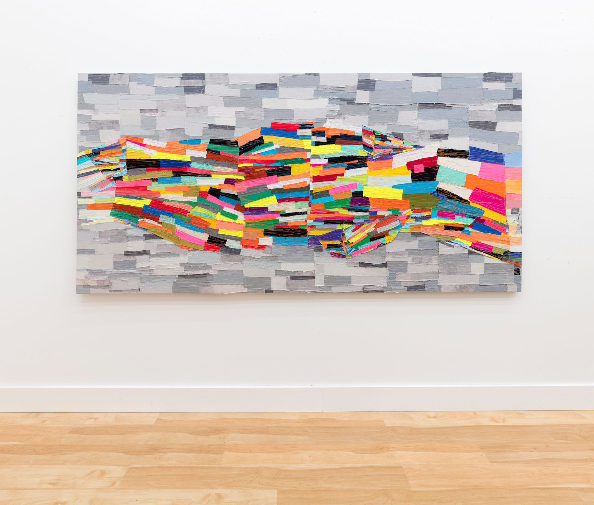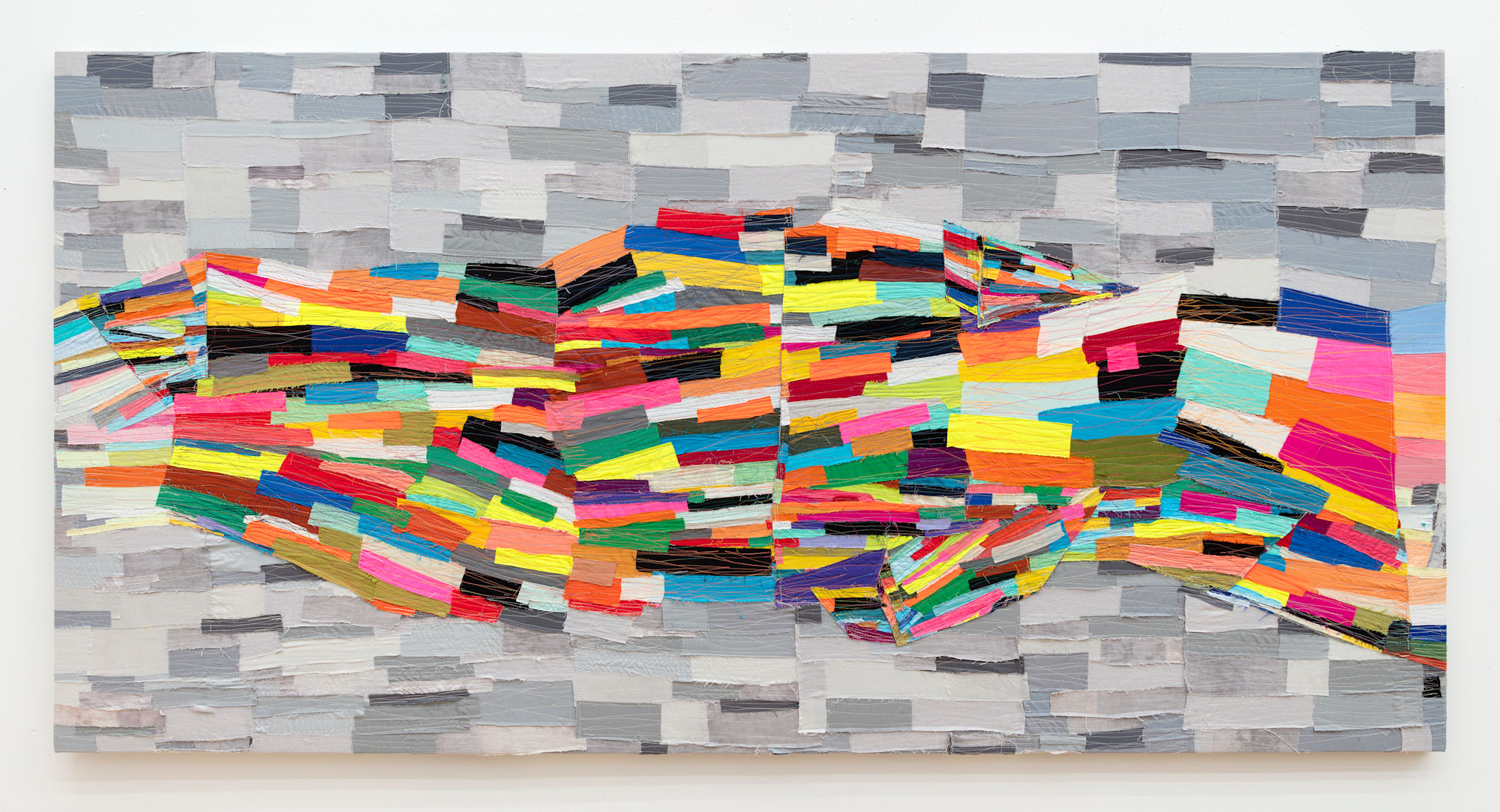 machine sewn fabric collage