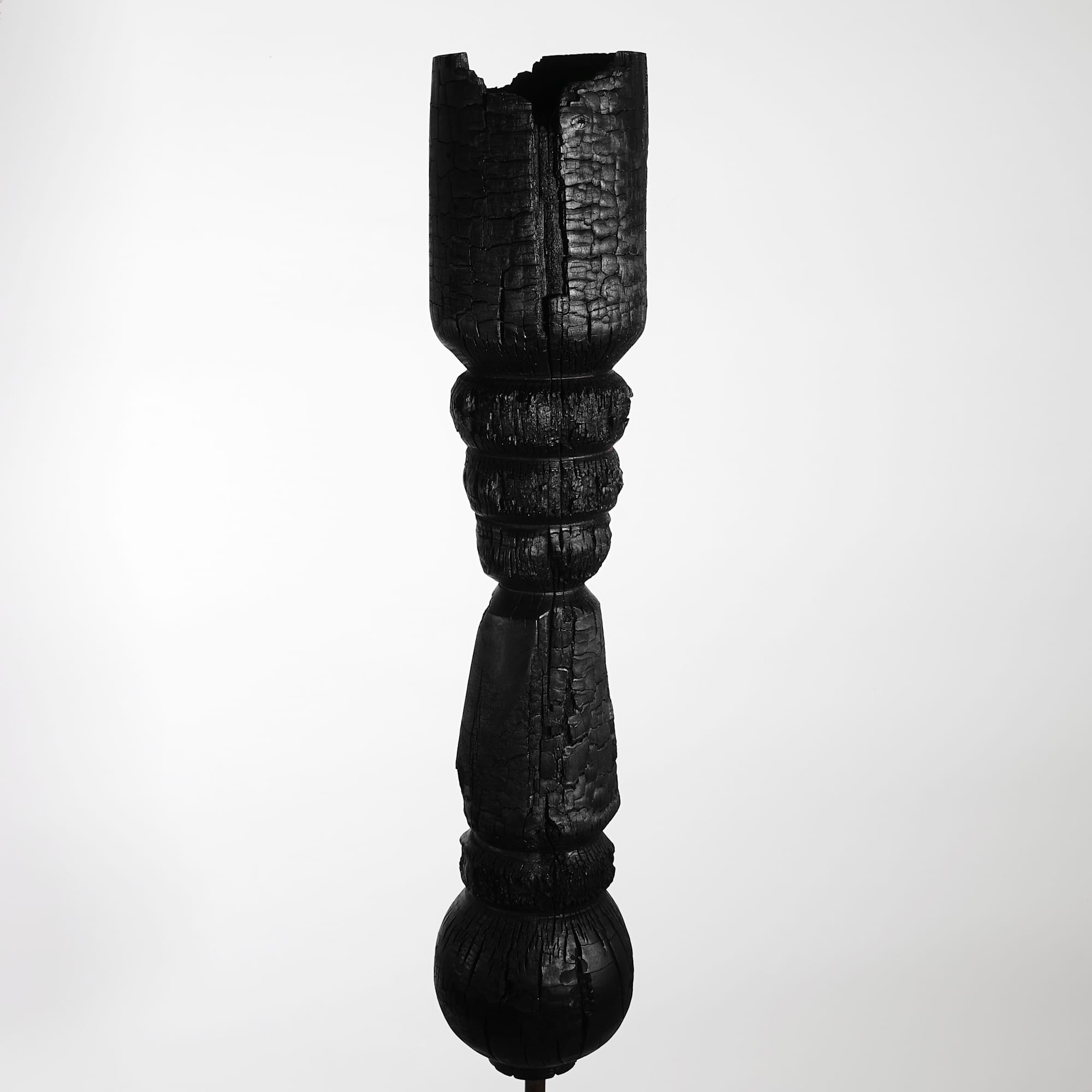 Salvaged hardwood, charred, corroded steel stand 7"diameter stand, various heights : 42.5", 41", 37"