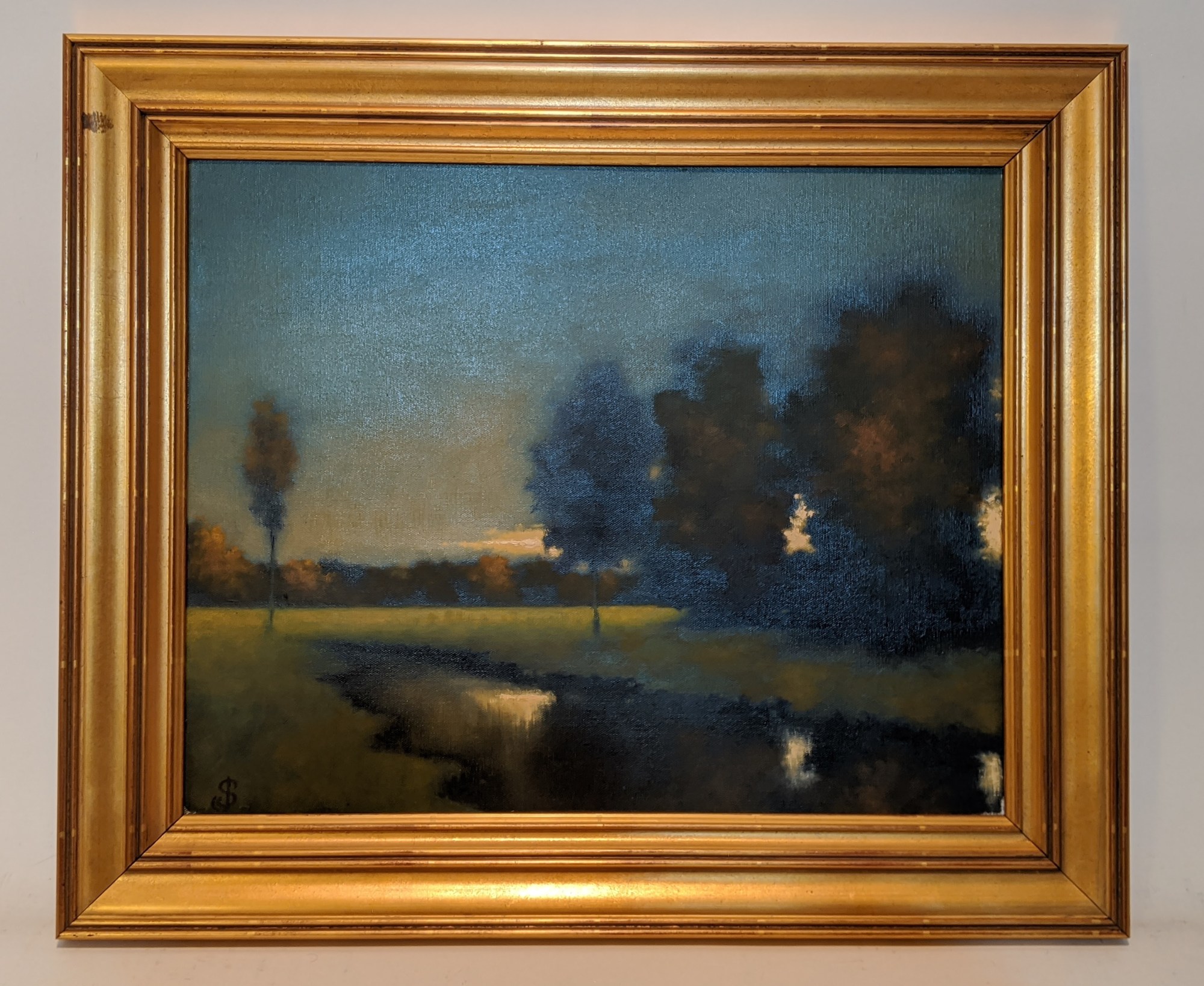 Landscape. Creek with trees right at twilight. Reminded Andy of work by George Innes.