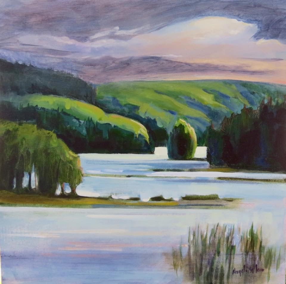 Studio painting from the smaller sketch done on location at Couchain Lake called “Last Light”.