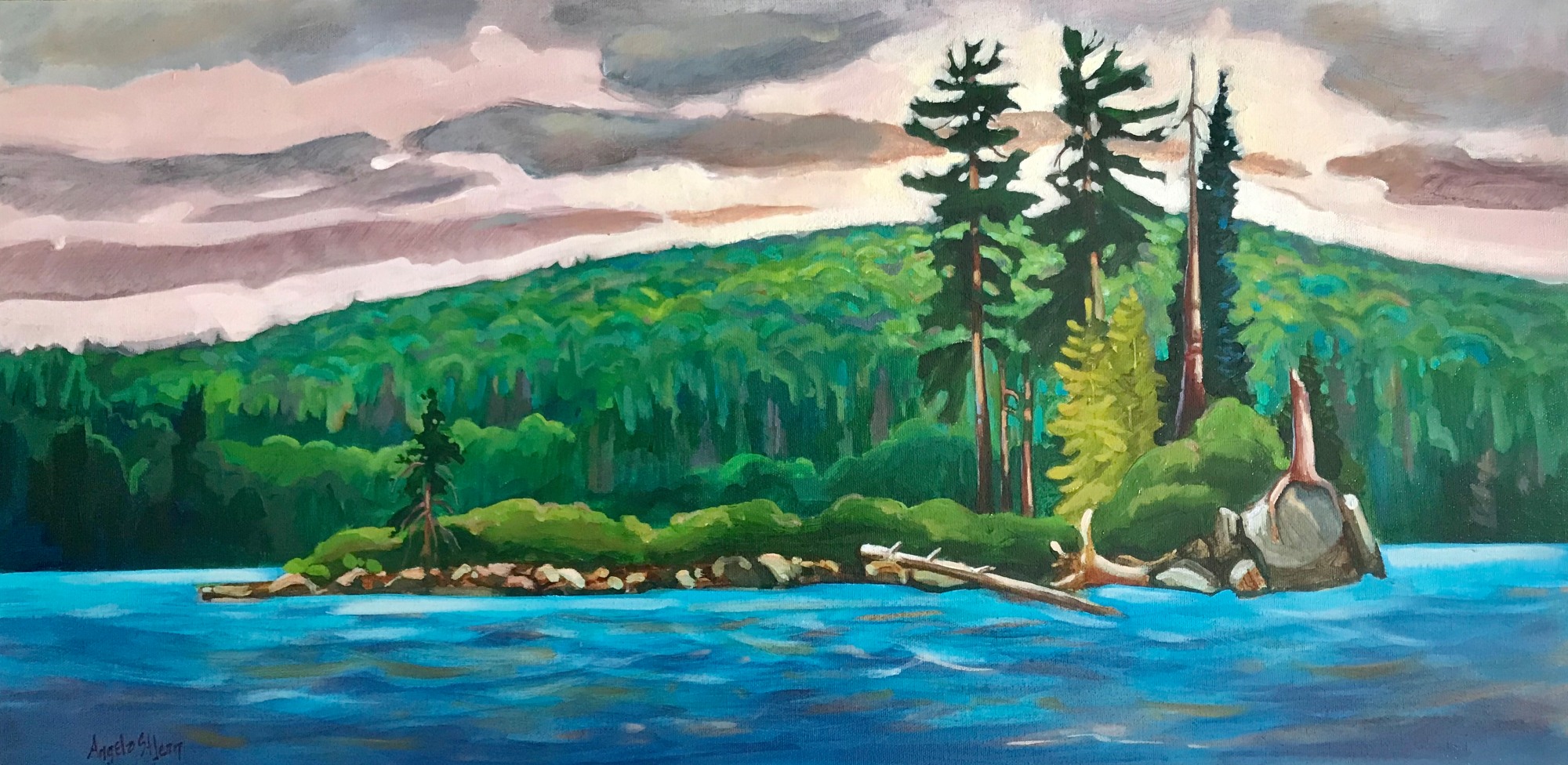 A trip up to Lake St Patrick Quebec in the zone d’exploitation controllee (ZEC) is not for the faint of heart. The nerve rattling roads make you second guess your reasons for the trip but the serenity of this area quickly convinces you to plan your return visit. A few pencil sketches and photos from the fishing boat were references for this studio piece.