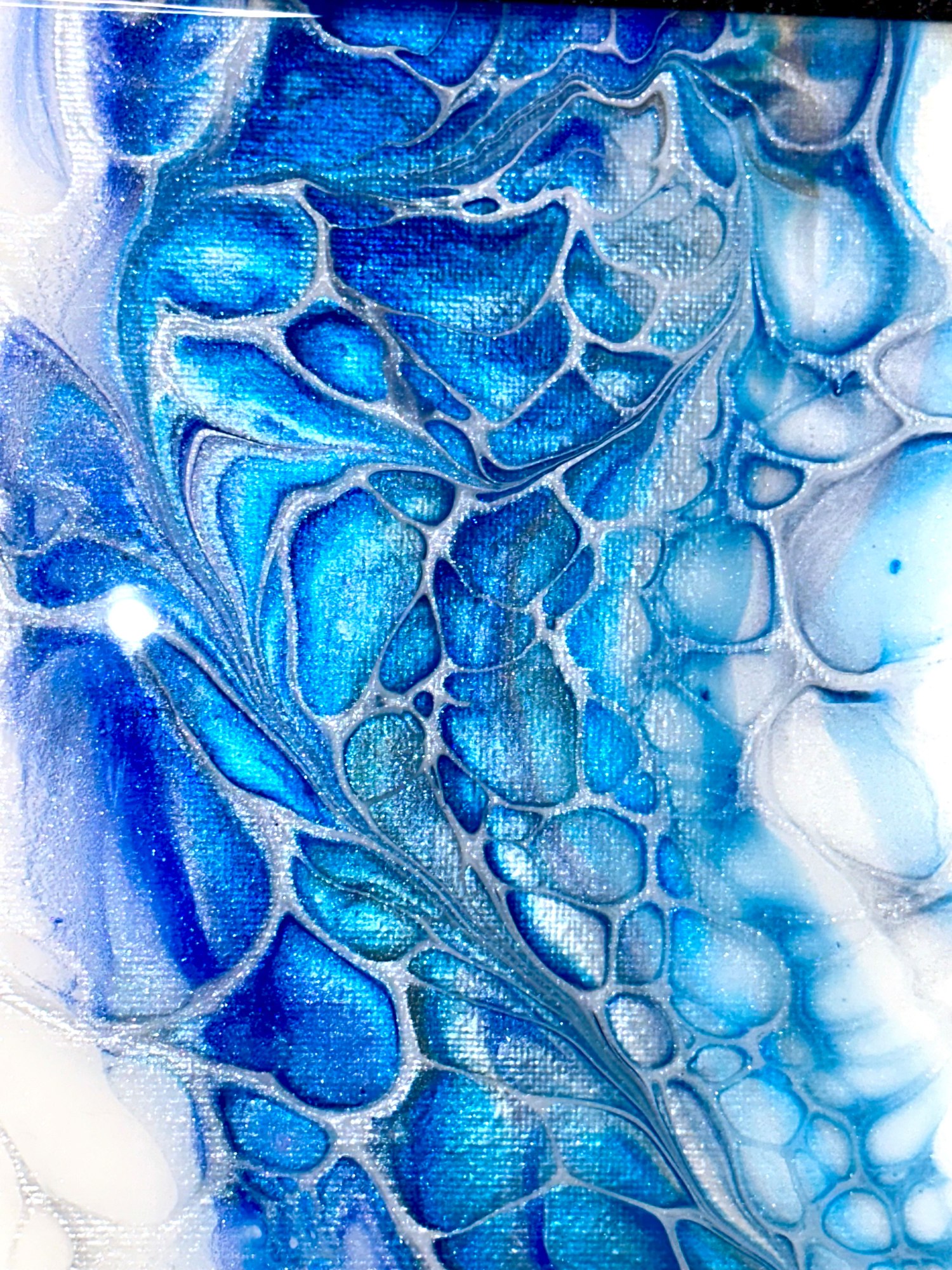 - Acrylic Paint, mica pigments, and resin on canvas.