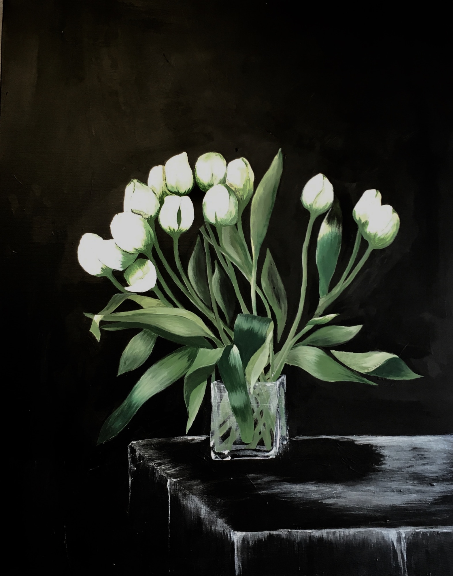 Just about the last tulips from spring and painted from life in the Studio at the Hurricane Creek. It has a companion piece painted some days later entitled Tulips II.