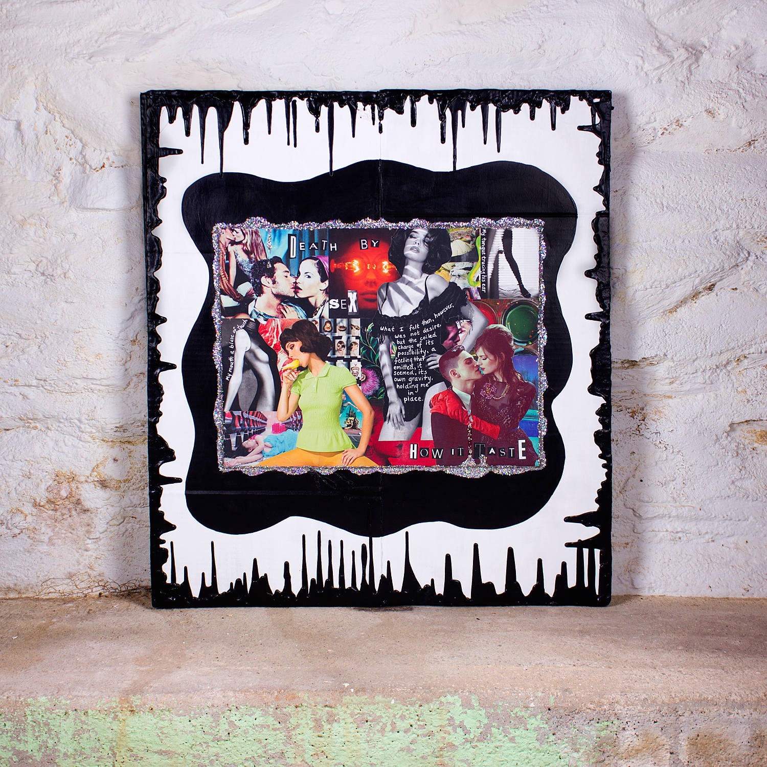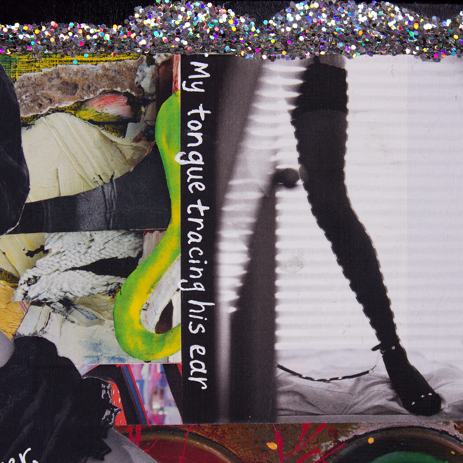 Paper, acrylic paint, gel ink and glitter on cardboard