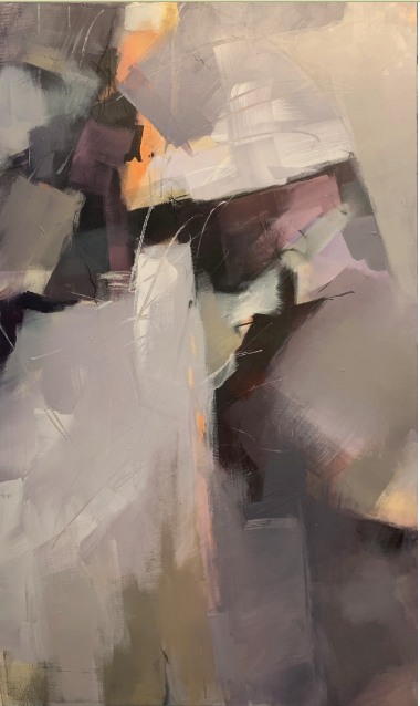 Muted purples, warm greys and mysterious darks draw the eye to the center which is highlighted with a splash of orange. Creates a vibrant and dynamic image