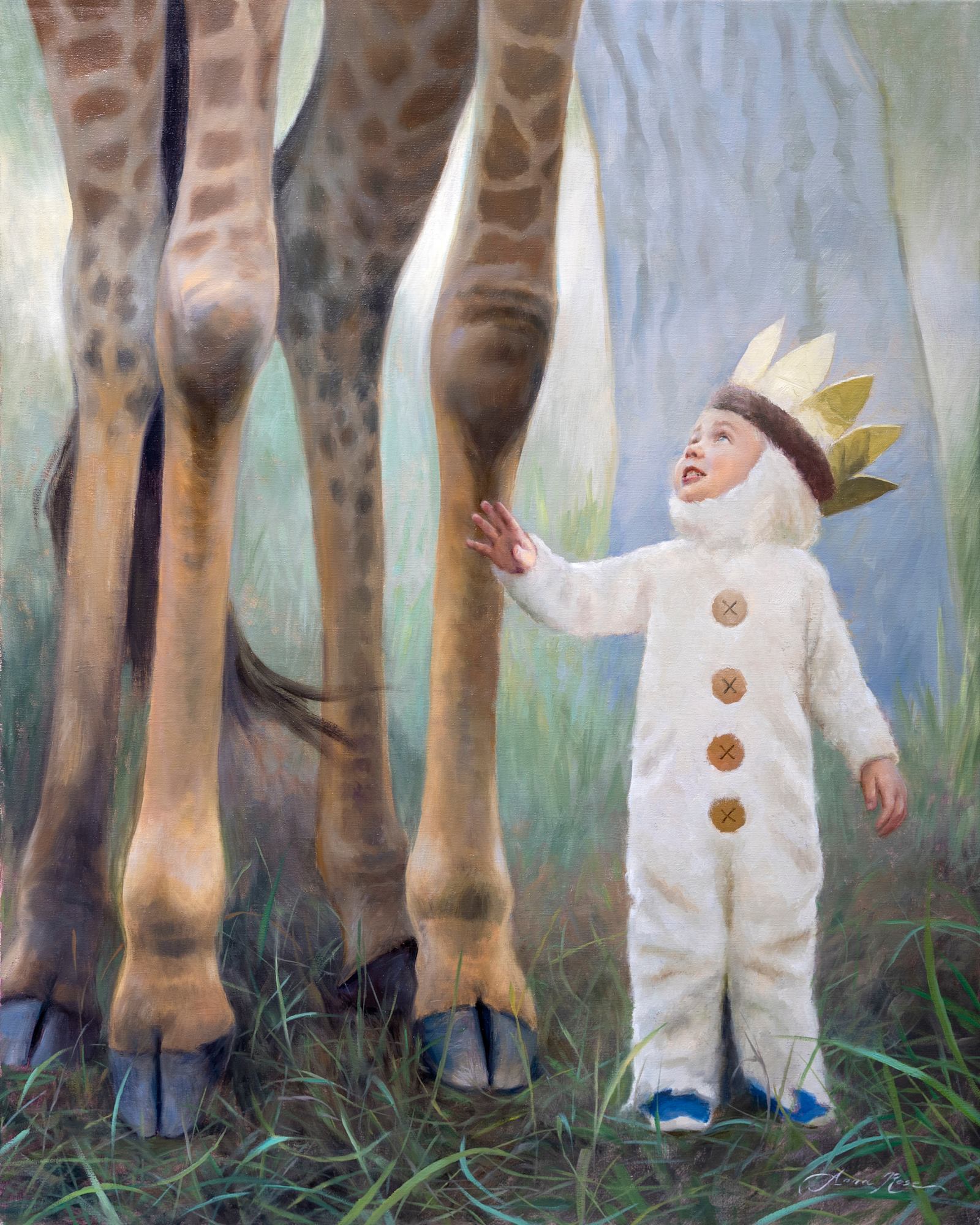 Who exactly holds the crown here—the boy (modeled by my son Everett), gazing up in wide-eyed wonder, or the giraffe, towering like a gentle monarch over his domain?