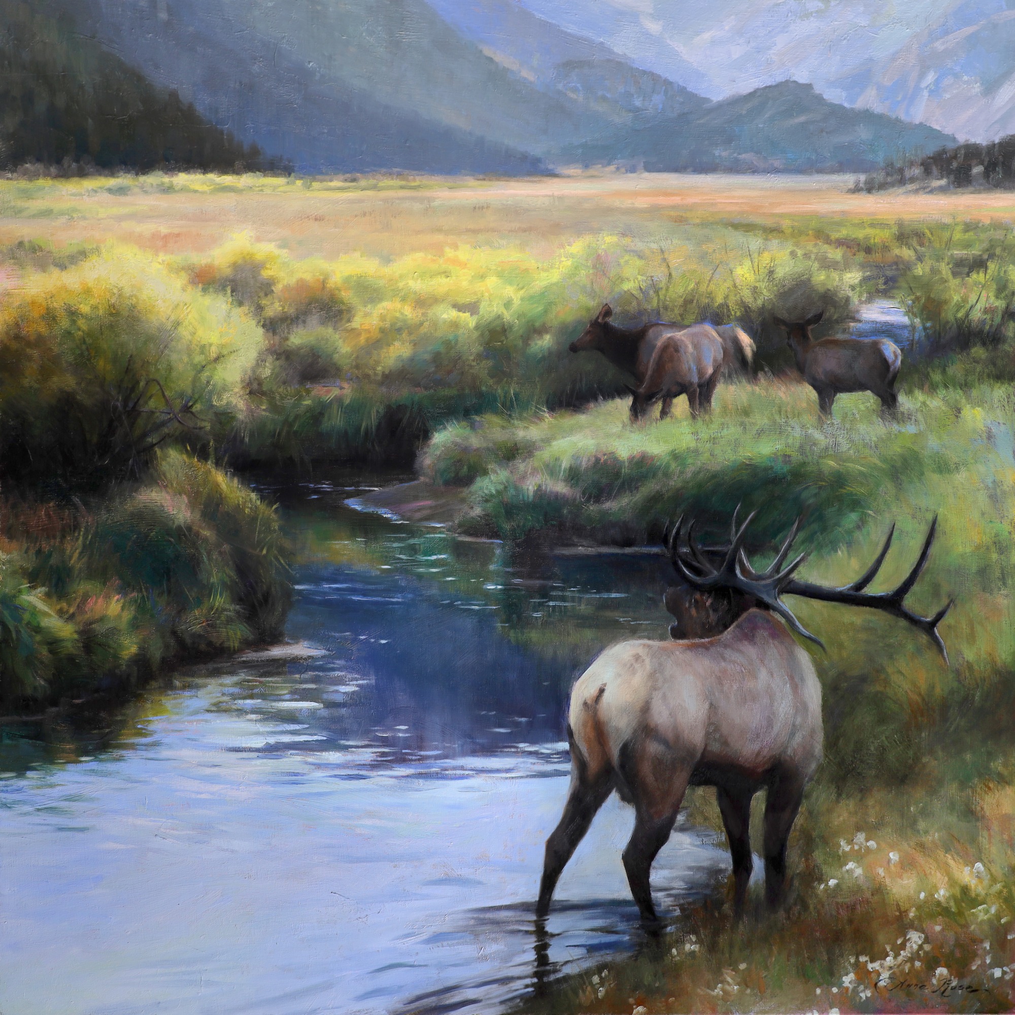 "Moraine Valley Elk," 30x30 inches, oil on panel