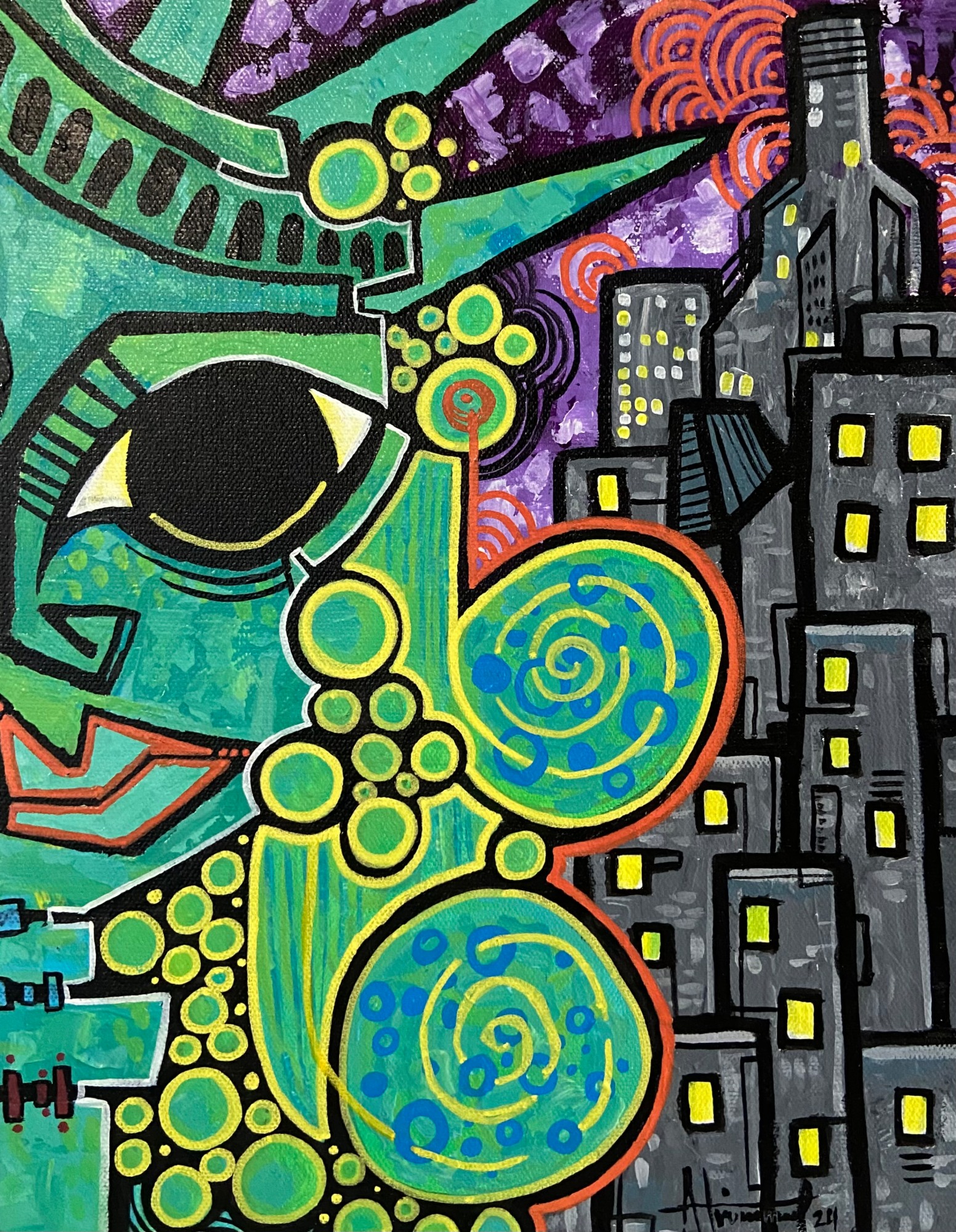 In this piece, I aim to capture the timeless essence of the Statue of Liberty, an iconic symbol of freedom and hope. With each brushstroke, I delve into her history, exploring the layers of meaning behind her green and turquoise hues. My rendition is a homage to her enduring spirit, inviting viewers to reflect on the ideals she represents and the journey towards liberty and equality.