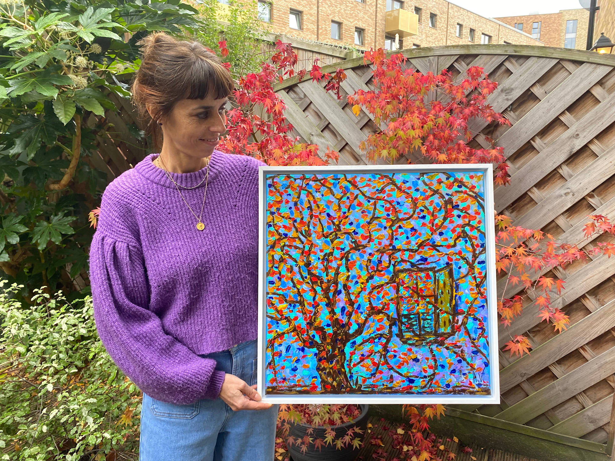 The painting captures the essence of one life's journey through the imagery of a majestic tree. Its thick branches, adorned with vibrant leaves symbolise the myriad influences and identities that shape our lives—motherhood, entrepreneurship, love, and friendship—each branch representing a unique facet of who we are.