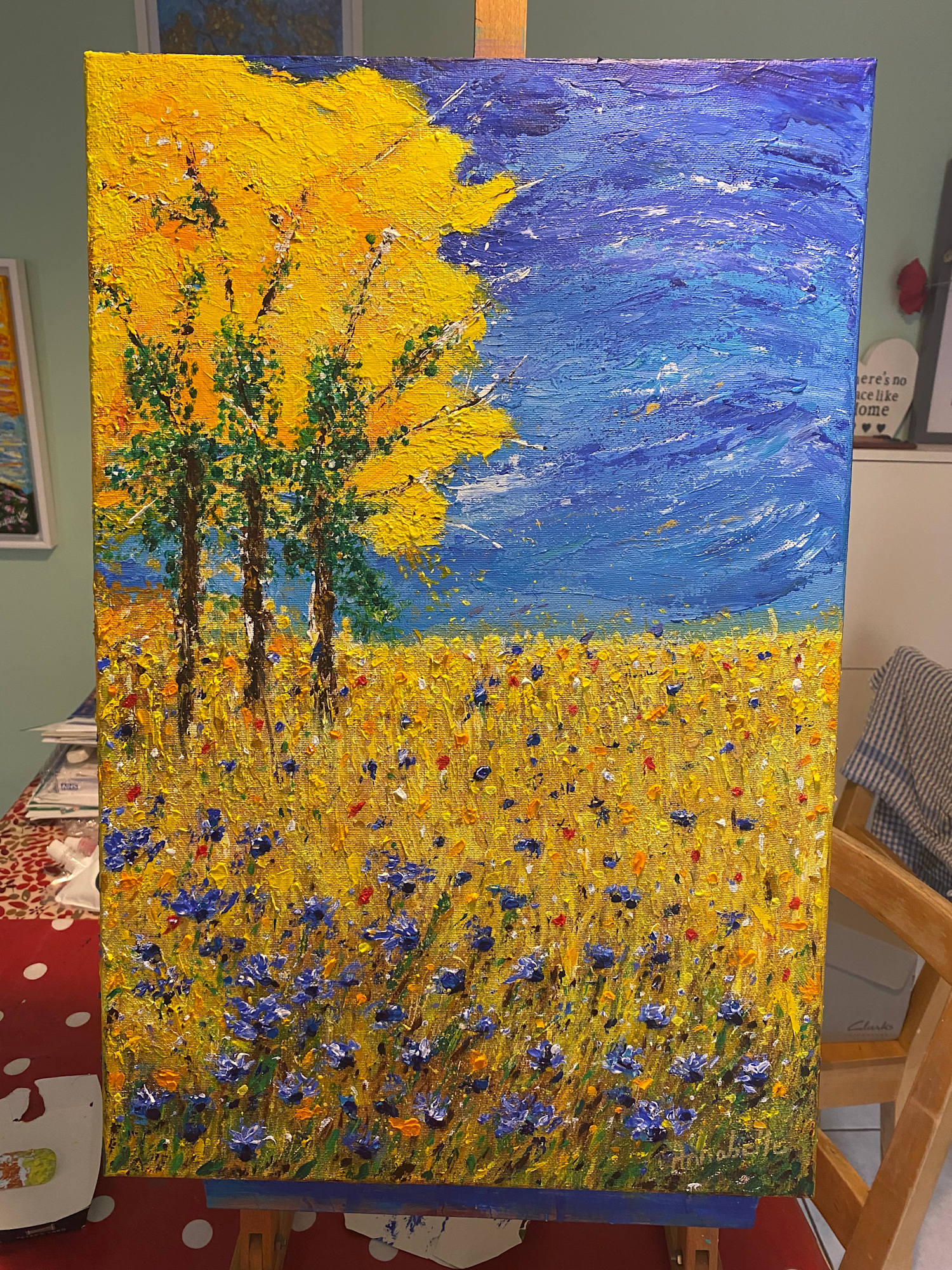Imagine yourself walking on a very hot summer’s day through sun-drenched meadows, with the brilliant blue sky stretched wide above your head and the gentle warmth of the sun caressing your shoulders. As you pause to gaze across the golden fields, alive with dancing wildflowers, your eyes are drawn to the jewel-like blue cornflowers scattered like nature’s confetti throughout the amber waves.