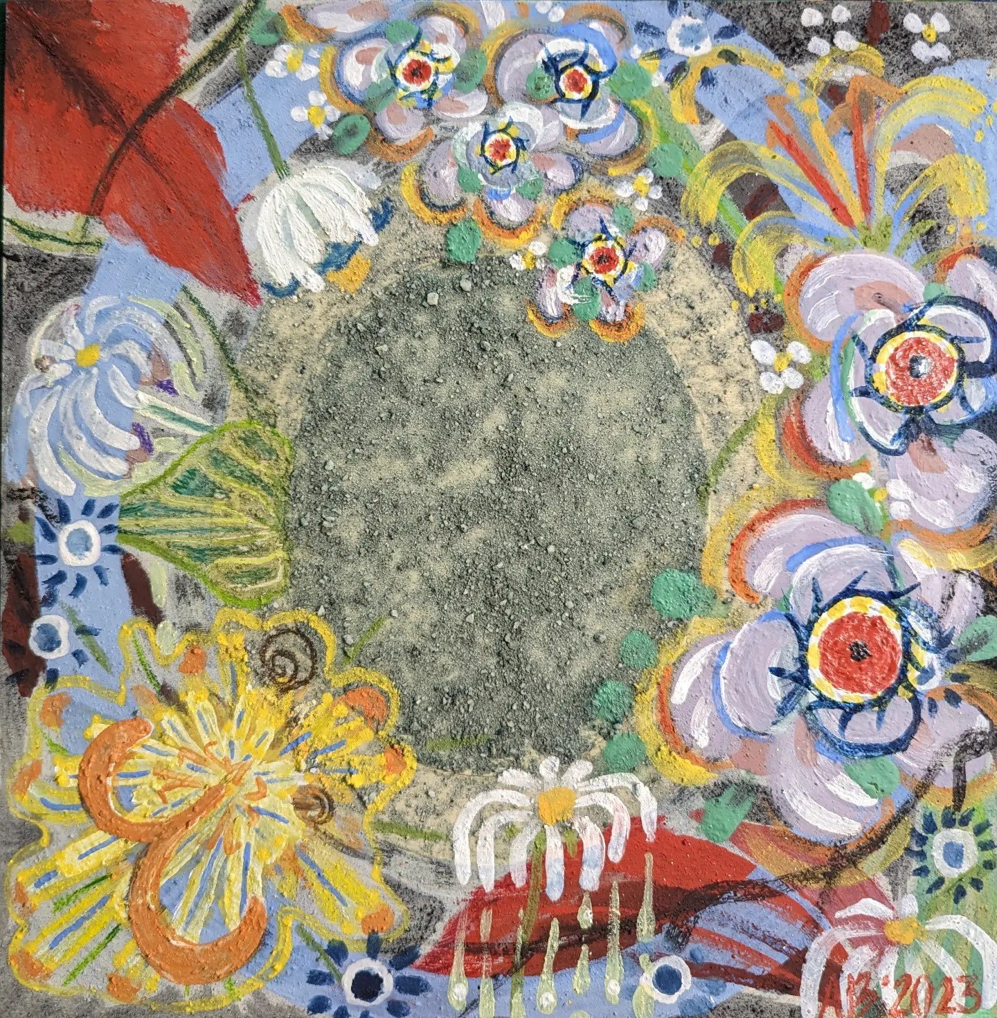 Crushed Rock from 2018 (PA,AZ,LA), Norwegian rosemaling pigments on wood