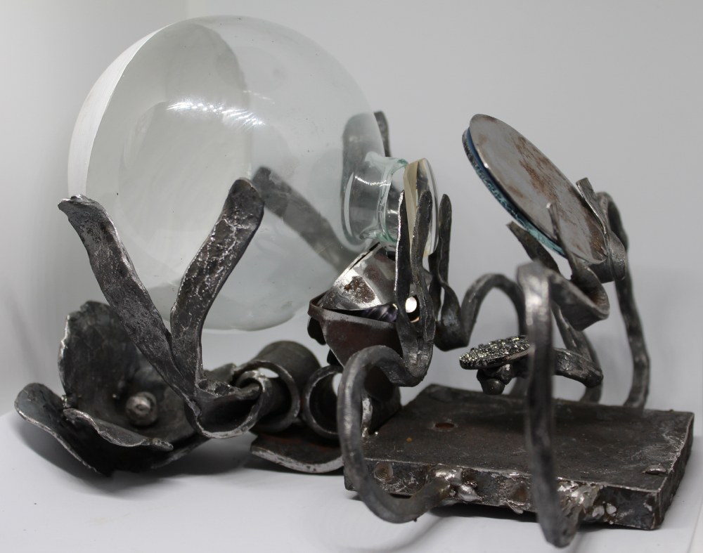 'Image Spitter' is an opaque projector (a solid object, mirror and lens) containing a family heirloom ( a button) donated by the daughter of Ruth Marie Payne.