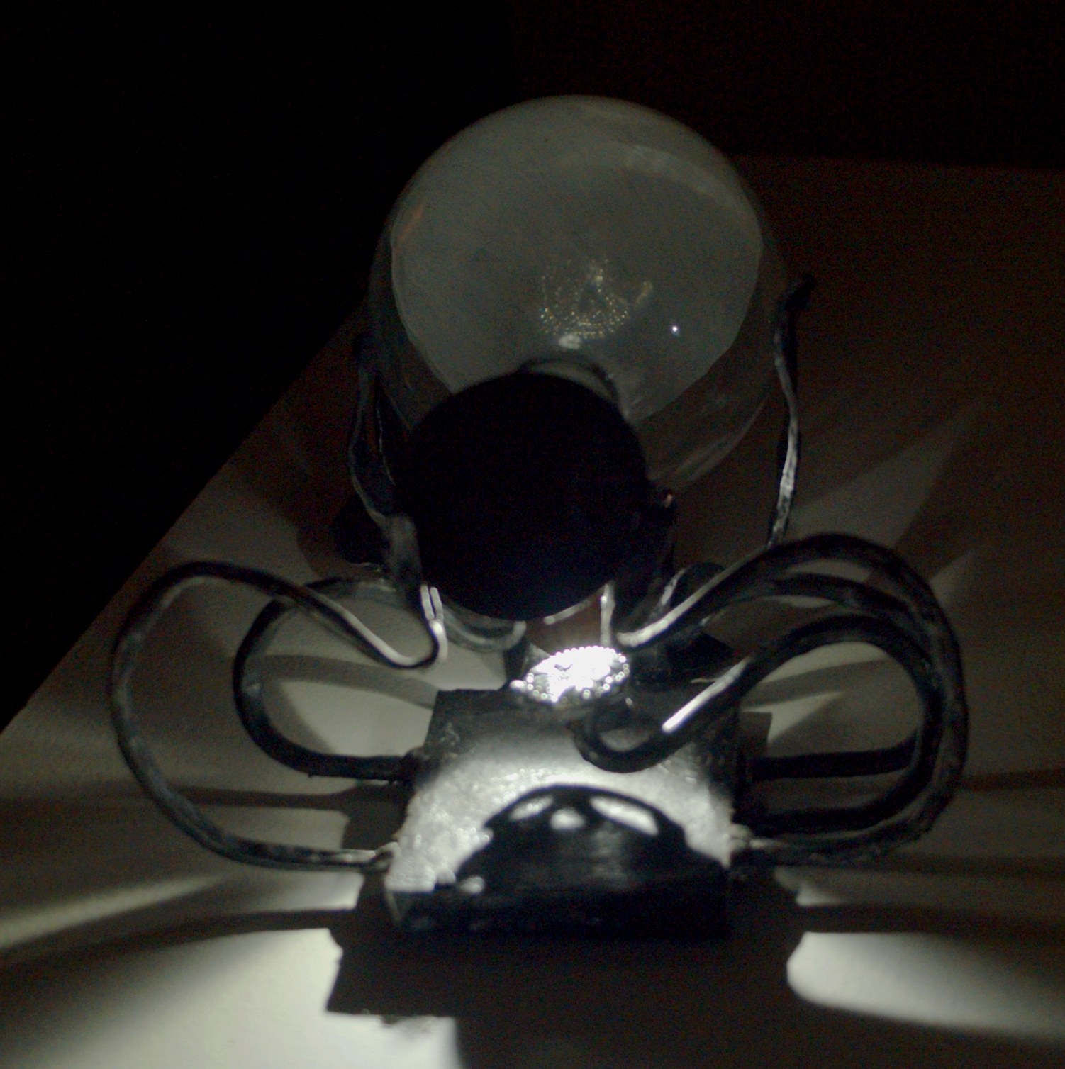 'Image Spitter' is an opaque projector (a solid object, mirror and lens) containing a family heirloom ( a button) donated by the daughter of Ruth Marie Payne.