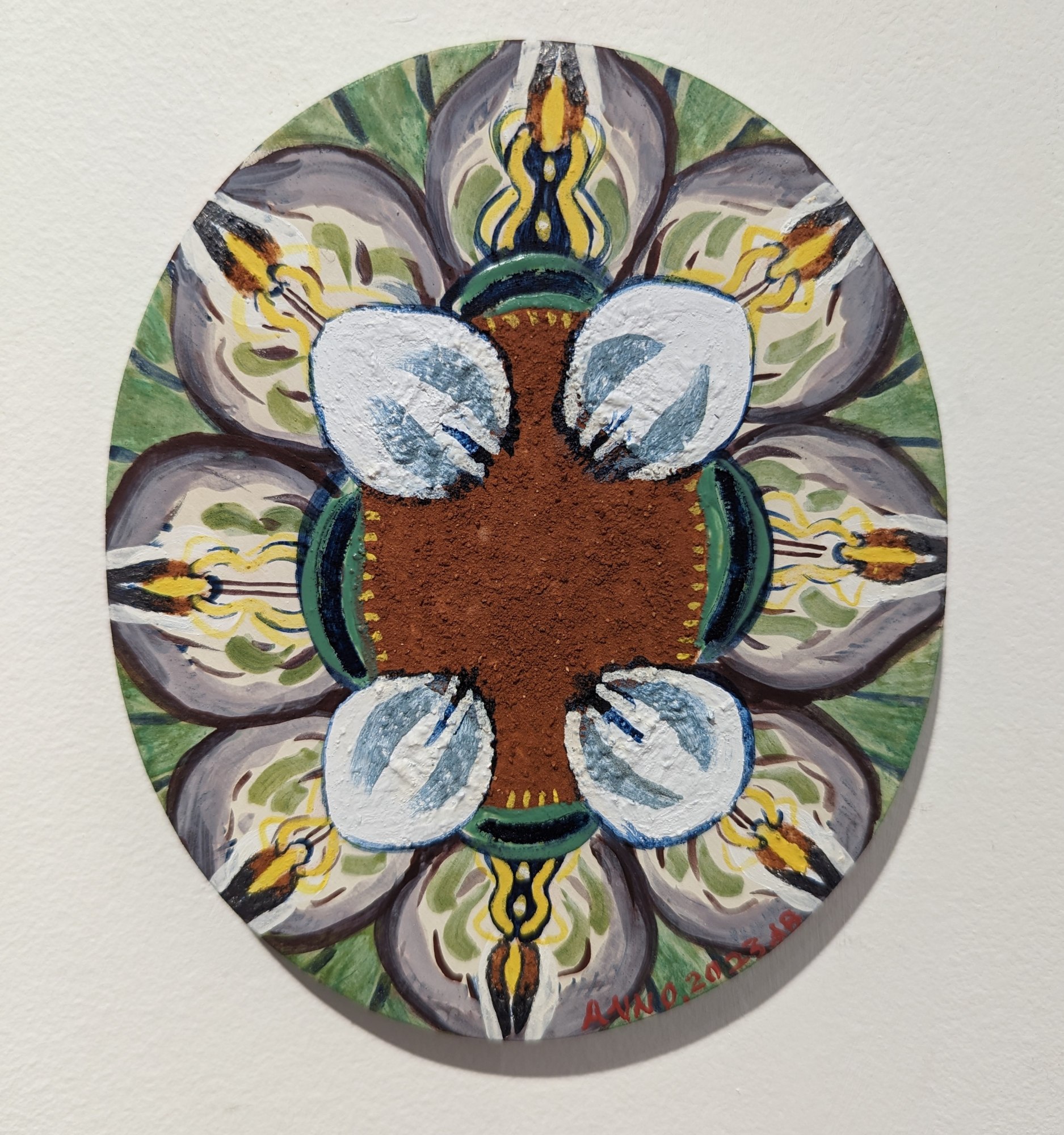 Crushed rock from Rue St. Pierre (Hyeres, France), Norwegian roselaming pigments and size on wood